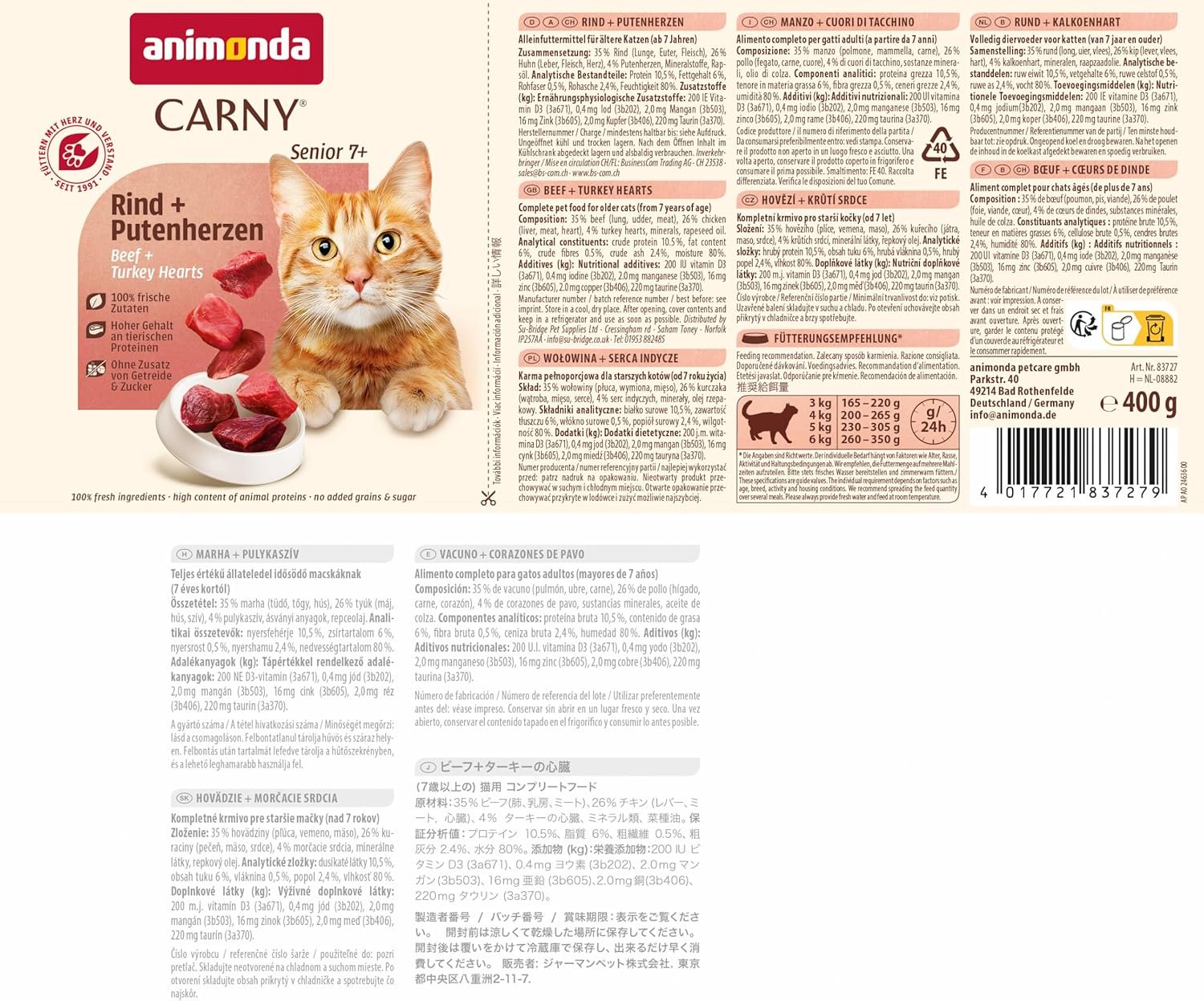 Für ältere Katzen: Carny Senior steht für eine ausgewogene, leckere und gesunde Ernährung und versorgt erwachsene Katzen ab 7 Jahren mit allen lebenswichtigen Nährstoffen