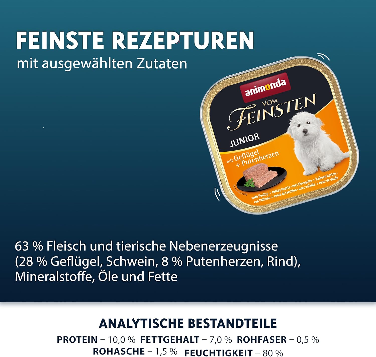 Ausgesuchte Zutaten: Das nährstoffreiche Nassfutter für Hunde enthält ausgewählte Zutaten von Geflügel und Putenherzen mit feiner Pastetenkonsistenz – ideal für junge Hunde!