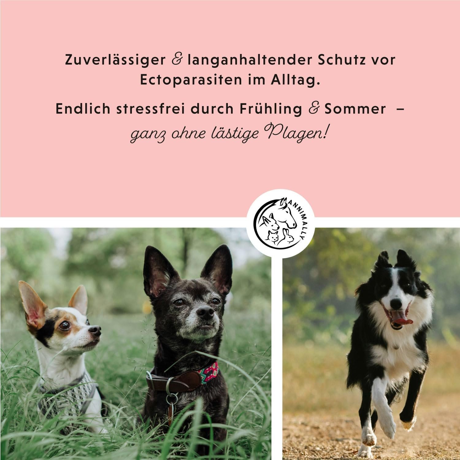 Einfach anzuwenden und zuverlässig, sorgen die AntiEcto Spot Ons dafür, dass Hunde sich im Alltag frei und unbeschwert bewegen können. Egal ob im Park, beim Spaziergang oder im eigenen Garten – mit den AntiEcto Spot Ons kommen Hunde unbeschwert durch Frühling & Sommer.