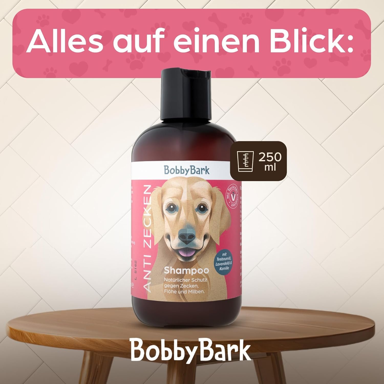 Anti-Zecken-Hundeshampoo – Natürlicher Schutz vor Zecken, Flöhen und Milben mit Teebaumöl, Lavendelöl und Kamille – mild und hautfreundlich – pH-neutral, vegan, pflegend