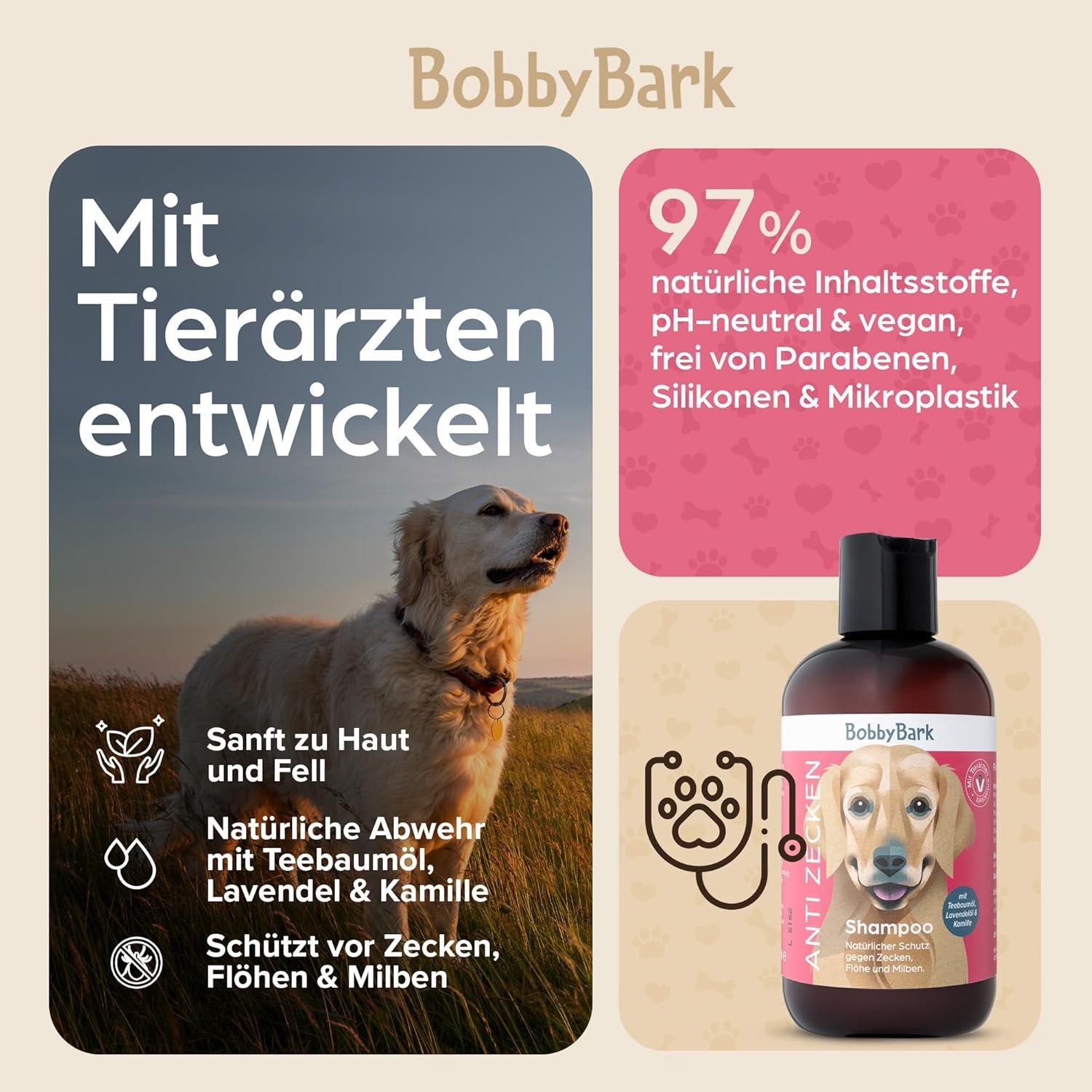 Natürlicher Schutz gegen Zecken, Flöhe und Milben – Mit Teebaumöl, Lavendelöl und Kamillenextrakt.