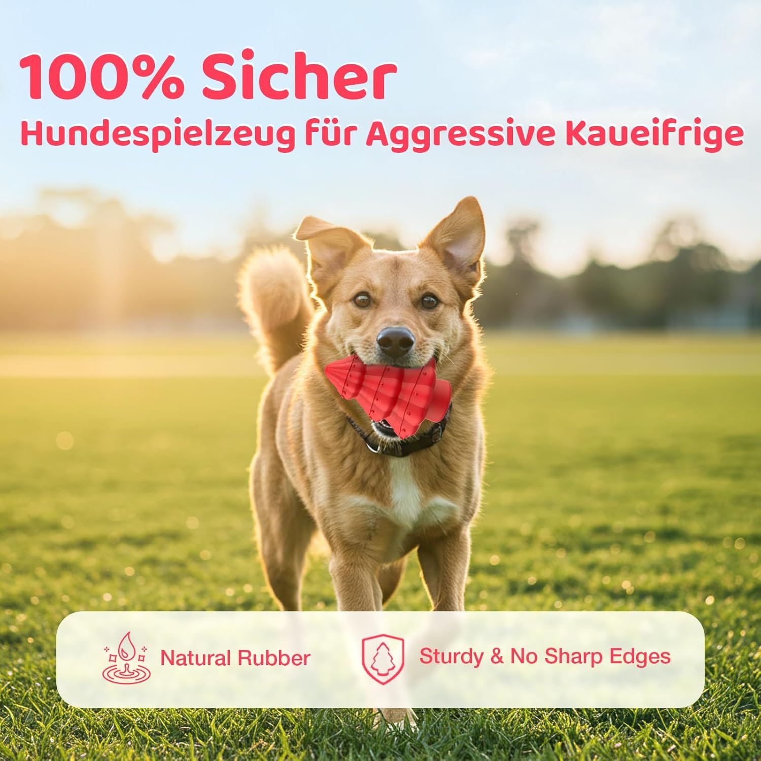 Aus premium Naturkautschuk. Sicher, strapazierfähig, sanftes Kauen. Lange Spielfreude und angenehmer Kaukomfort für Ihren Hund.