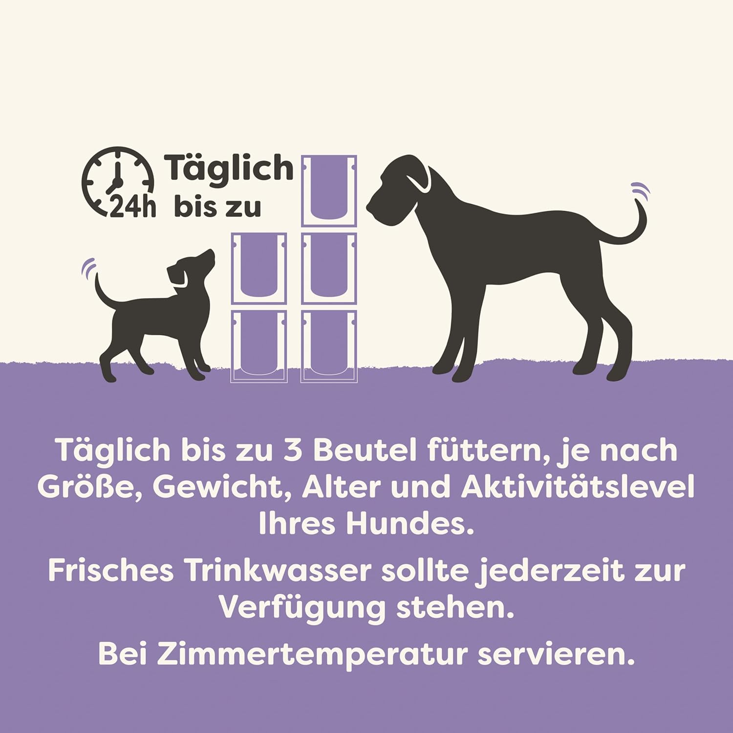 Nassfutter für Hunde in Soße eignet sich ideal als Alleinfutter oder als Mischung mit jedem Trockenfutter für eine vollwertige und ausgewogene Ernährung