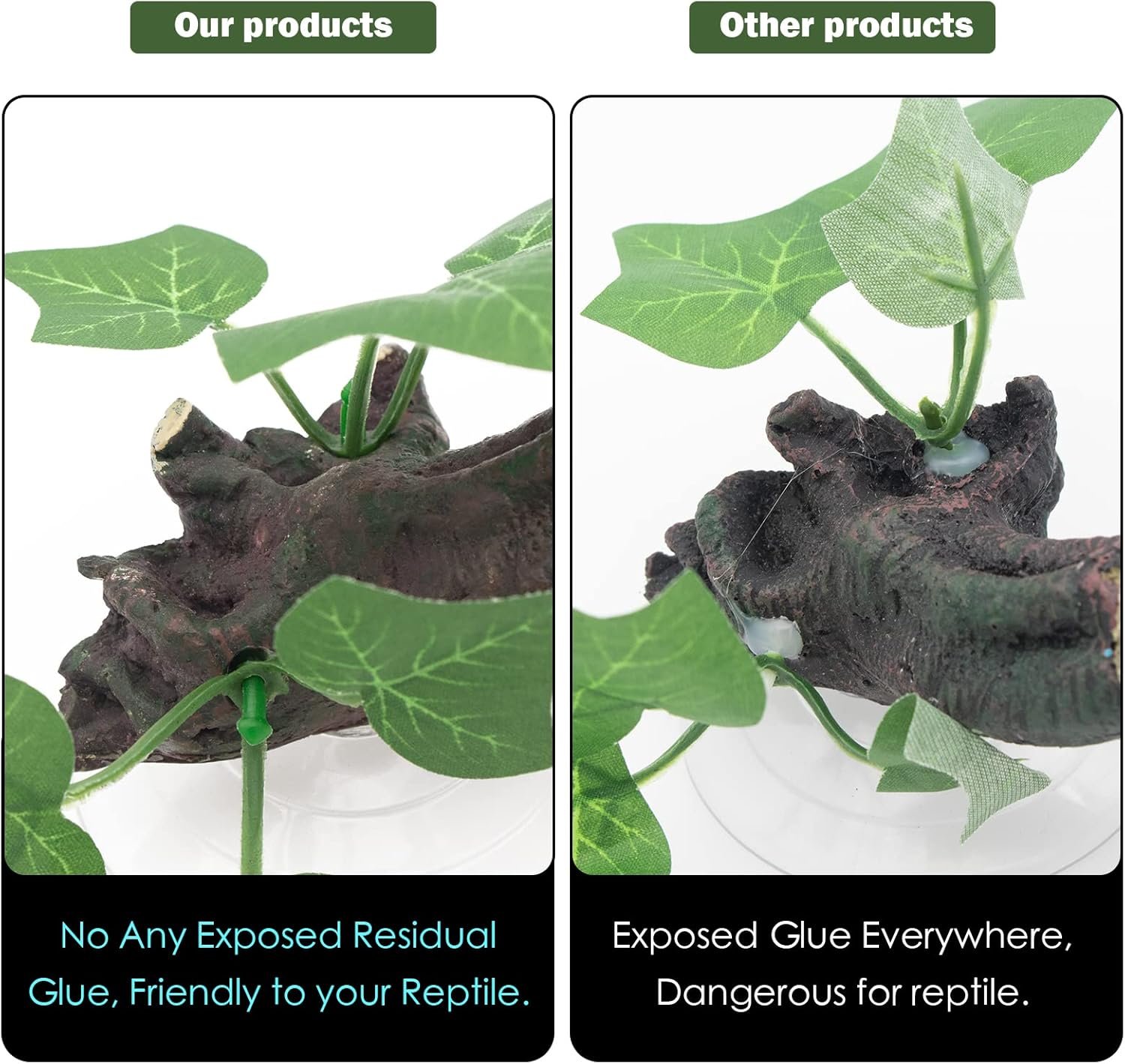 Universeller Einsatz in der Terrarienlebensraumdekoration. Es handelt sich um eine professionelle Reptilien-Kletterpflanze zur Dekoration von Schlangen, Eidechsen, Bartagamen, Einsiedlerkrebsen, Chamäleons, Fröschen und Leopardgeckos.
