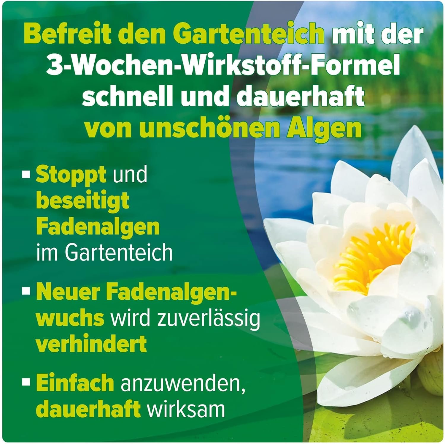 Löst sich schnell auf und verteilt sich perfekt im Teich