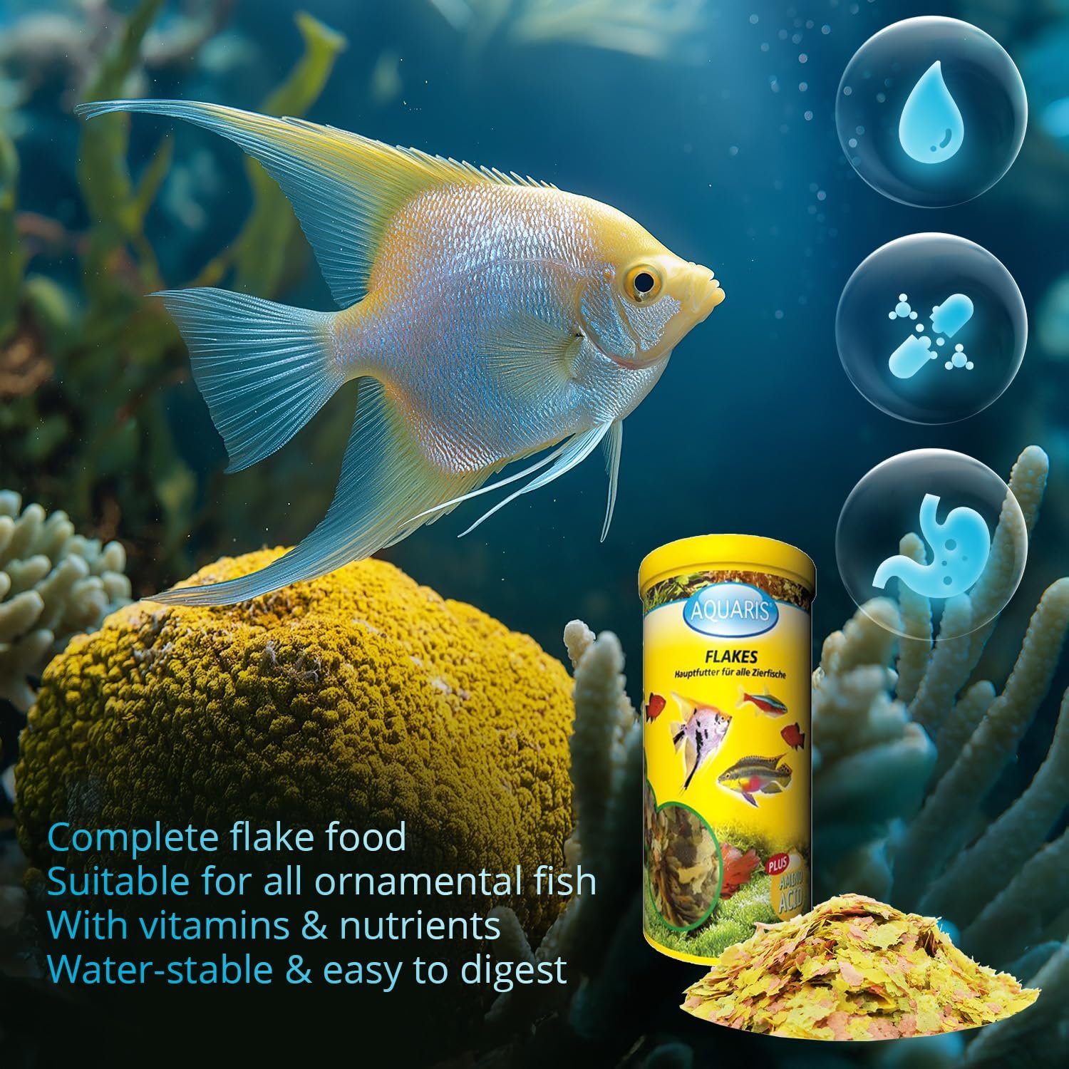 Leicht verdaulich und nahrhaft: Aus sorgfältig ausgewählten Rohstoffen hergestellt, ist das Futter besonders bekömmlich und liefert alle wichtigen Nährstoffe, die Zierfische benötigen.