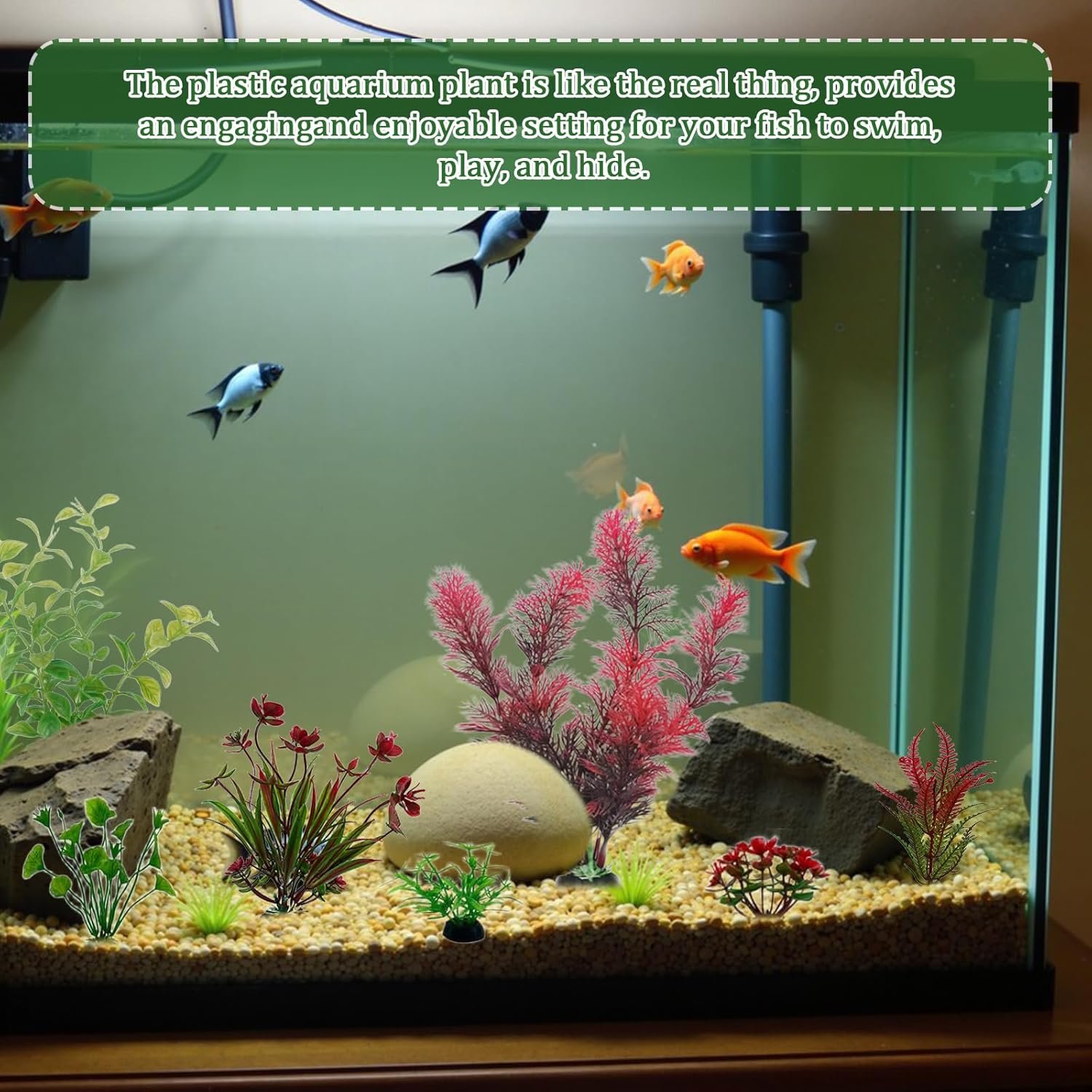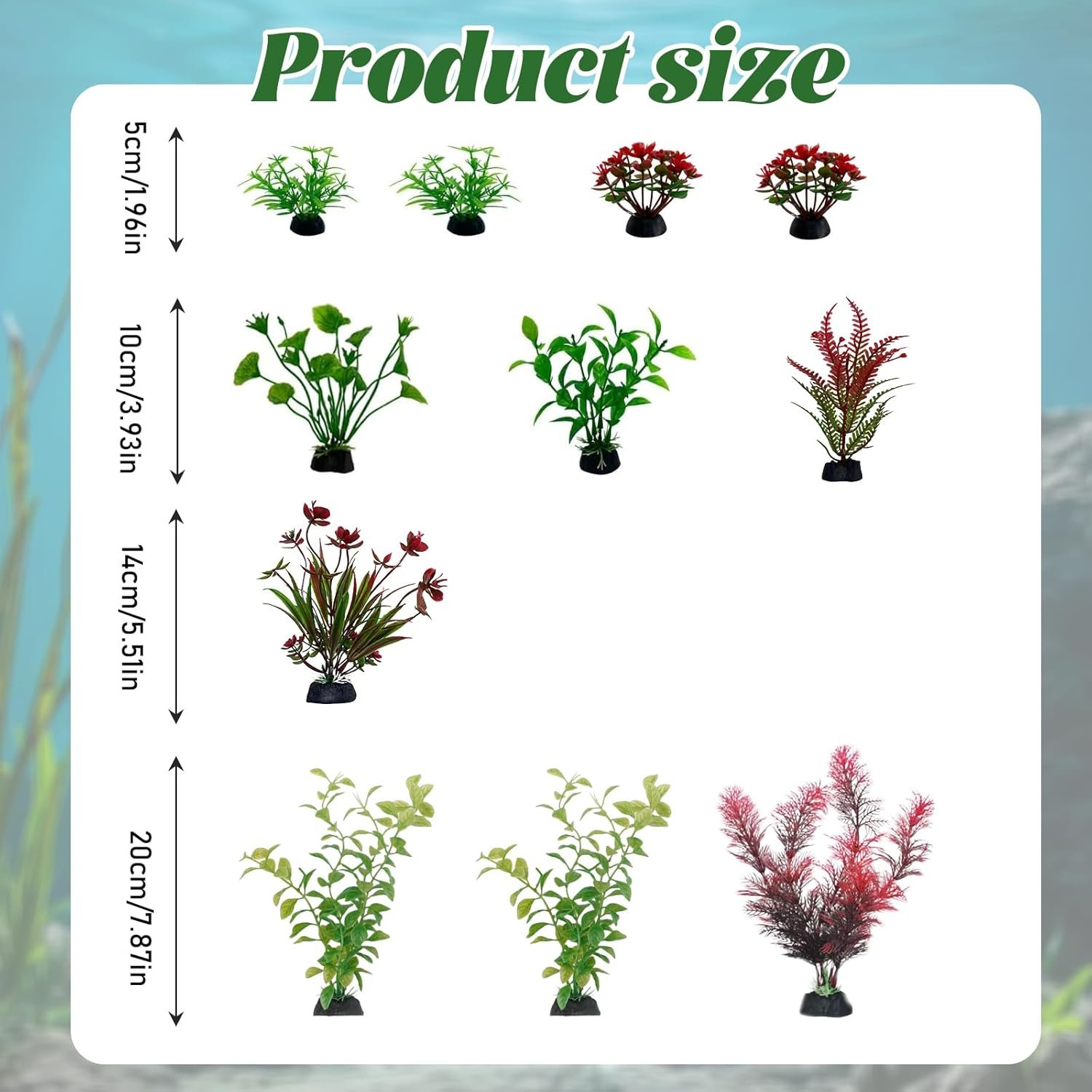 Verschiedene Größen: Aquarium-Pflanzendekoration in verschiedenen Stilen und Größen für vielfältige Anpassungsmöglichkeiten, jede Pflanze wird mit einem Sockel geliefert, um sie im Kies zu verankern und ein einzigartiges Unterwasserparadies zu schaffen.