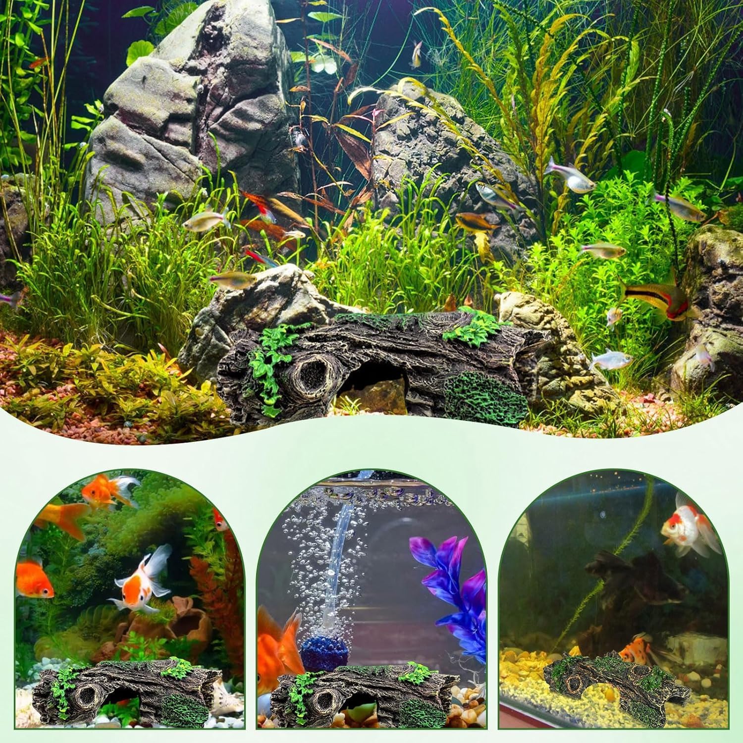 【Natürliche Ästhetik】 Das hohle Baumstamm-Ornament aus Harz ähnelt dem Aussehen und der Haptik eines echten Baumstamms und schafft eine naturalistische und ästhetisch ansprechende Umgebung für Ihre Haustiere. Sein detailliertes Design verleiht jedem Aquarium oder Tank einen realistischen Touch.