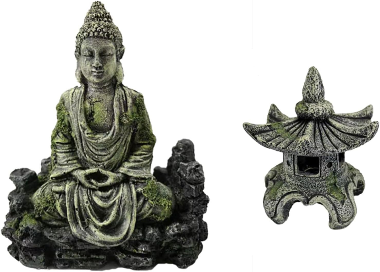 NÜTZLICH IM UND AUSSERHALB DES WASSERS – Das wunderschöne Paar antiker Buddha-Statuen inspirierter Ornamente eignet sich perfekt für die Unterwasserwelt, sowohl im Salz- als auch im Süßwasser, aber auch außerhalb von Wasser in Terrarien und Reptilienkästen. Es ist keine Wartung erforderlich und sie sehen einfach auf einem Regal in Ihrem Zuhause großartig aus.