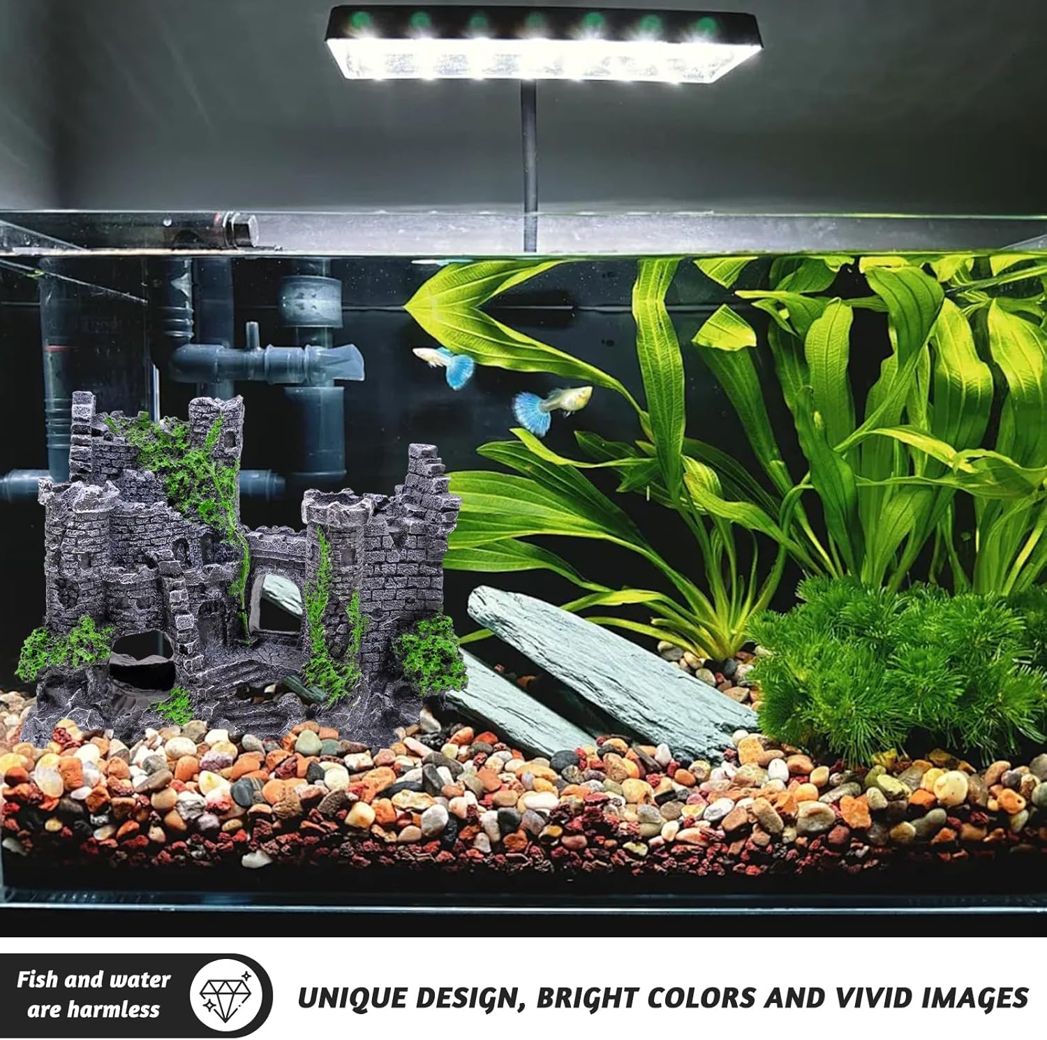 Ungiftig und sicher: Diese Aquarium-Schlossdekoration besteht aus sicherem, langlebigem Harz. Dieses umweltfreundliche Harzmaterial ist ungiftig, umweltfreundlich und unschädlich für Fische und Wasserqualität.