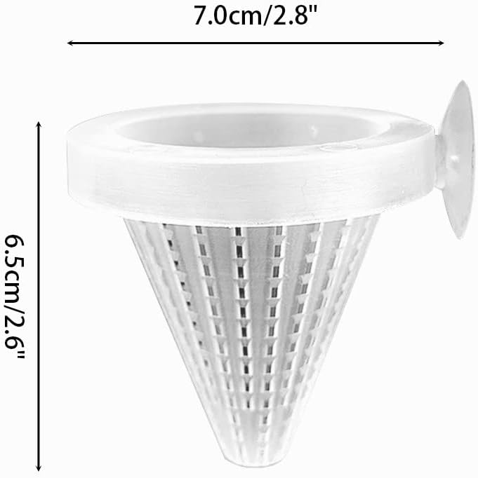Konisches Design: Größe: Durchmesser Φ7,0 cm/2,8 Zoll, Höhe 6,5 cm/2,6 Zoll. Hält das Aquarium sauberer und das Futter verteilt sich nicht so leicht.