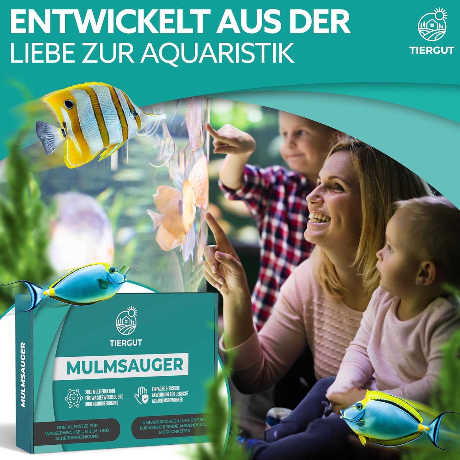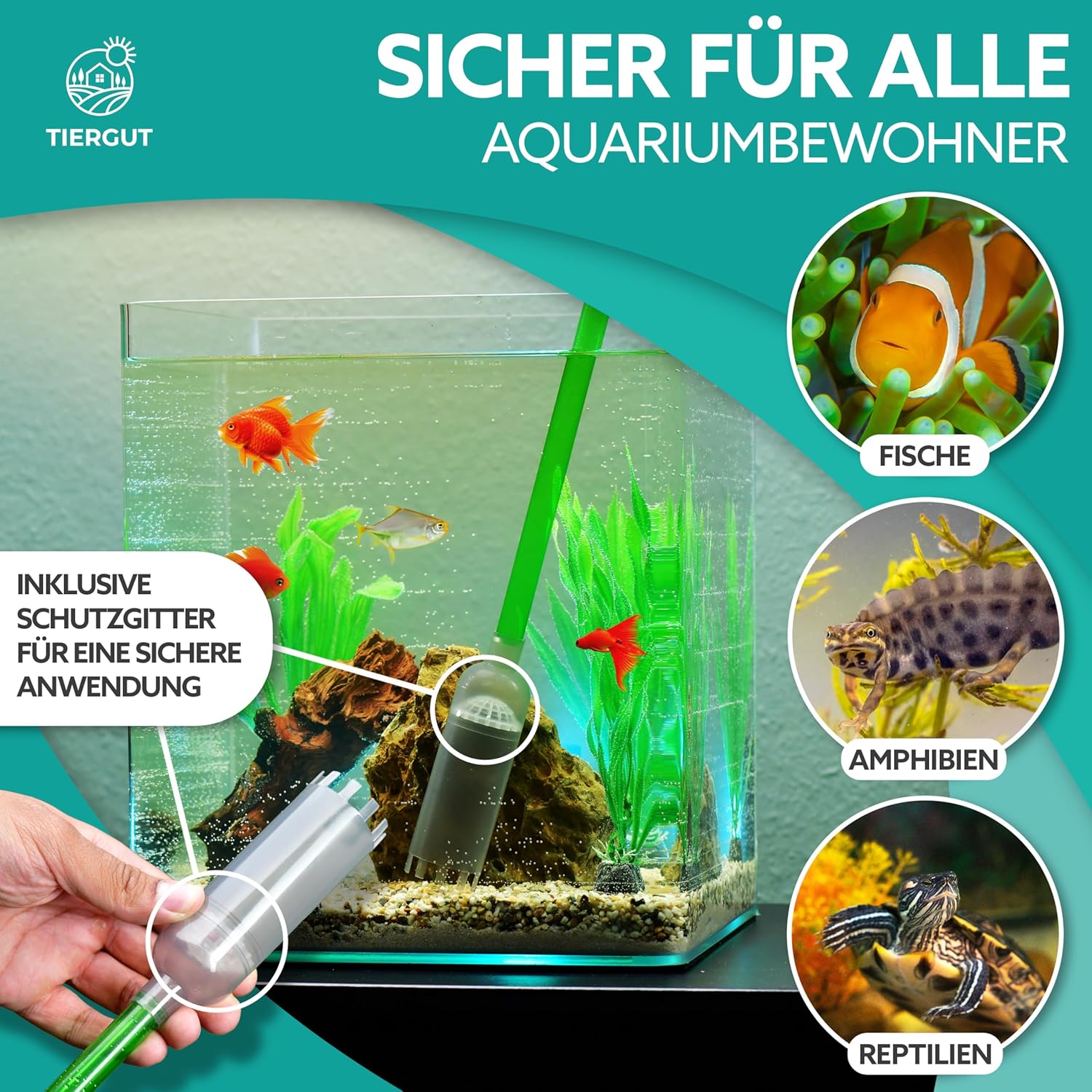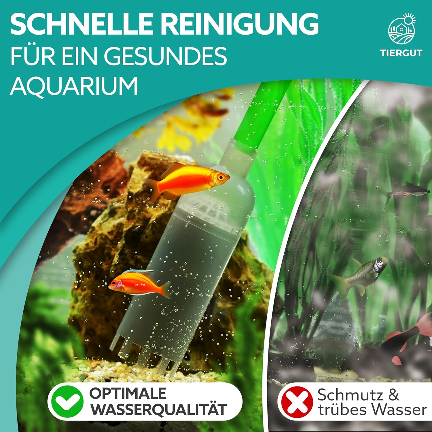 Für alle Aquarien – ob groß oder klein, für Fische, Garnelen, Reptilien oder Amphibien: Der Aquariensauger von Tiergut ist das ideale Aquarienzubehör zur Reinigung von Becken aller Art