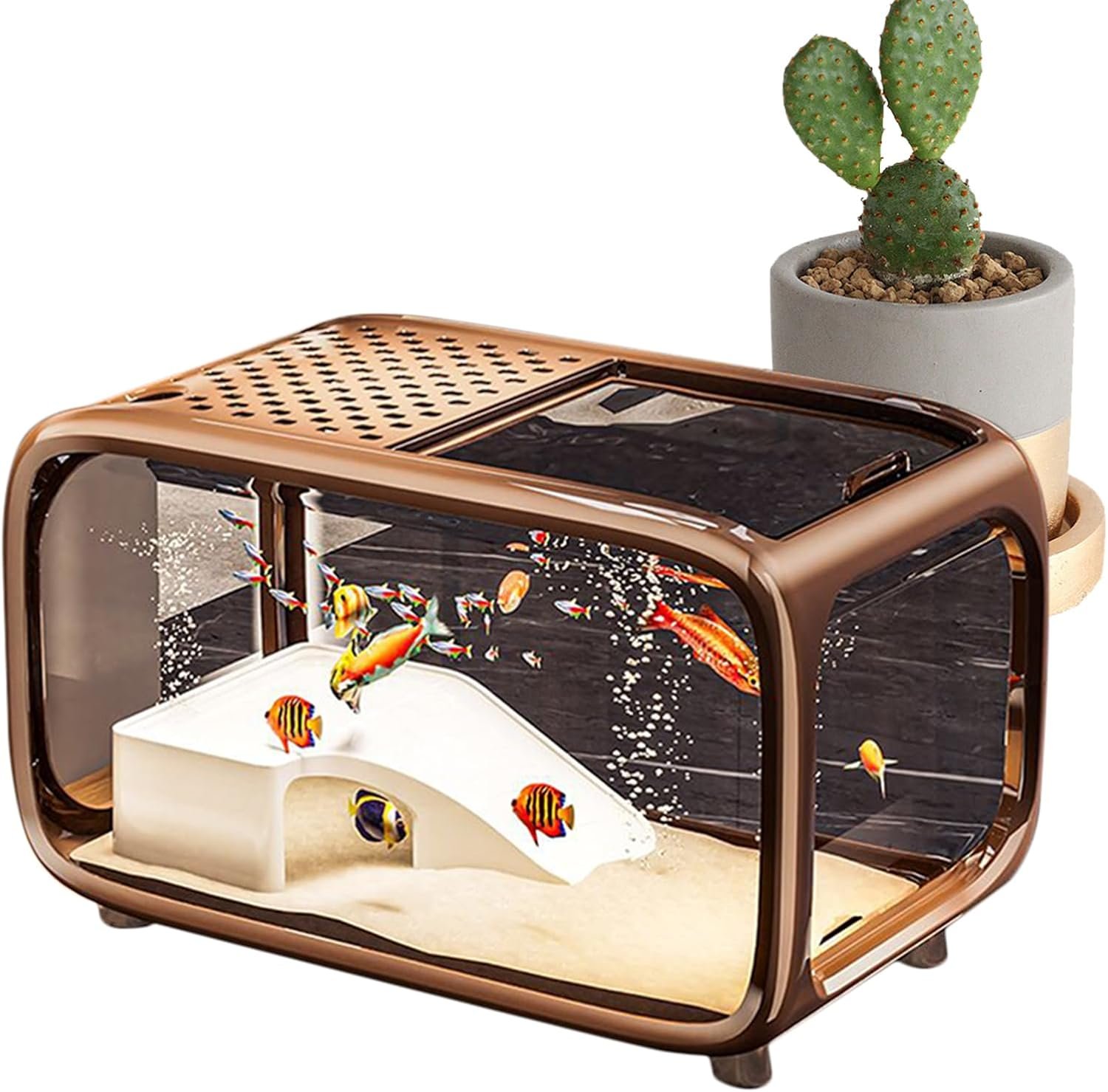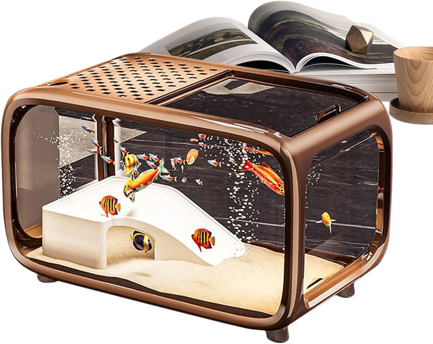 Transparente Designdarstellung: Erzielen Sie ein elegantes Erscheinungsbild mit diesem Aquarium aus klarem Material, das die Fischbewegungen betont – seine fließende rechteckige Form verleiht moderne Ästhetik und fördert eine natürlich-künstlerische Atmosphäre in jedem Raum