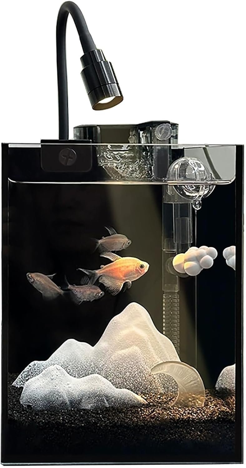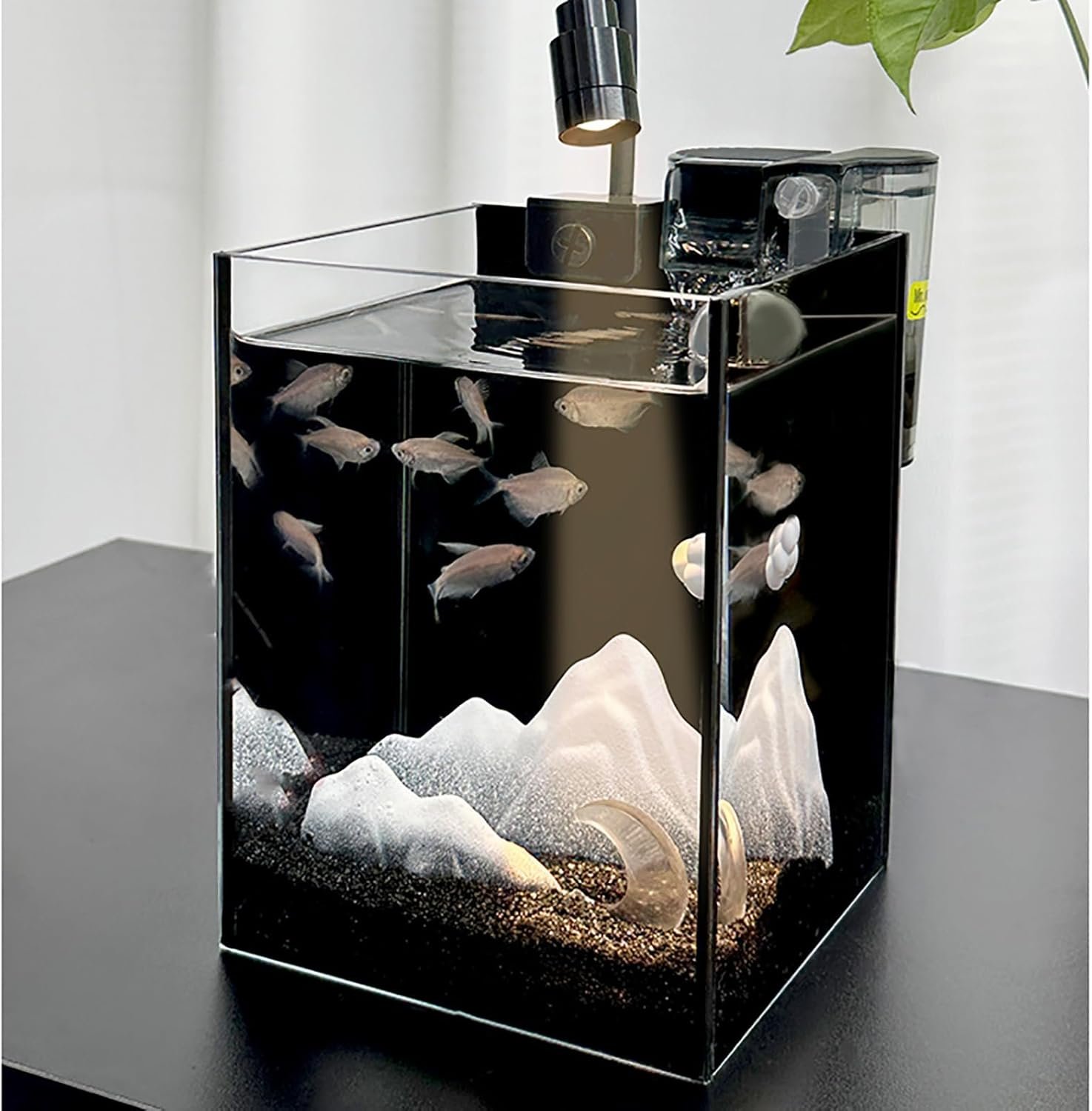 KOMPLETTES AQUARIUM-KIT – Das komplette Starter-Set umfasst ein randloses, hochtransparentes Glasaquarium, einen einstellbaren Durchflussfilter, eine um 360° drehbare LED-Beleuchtung und dekoratives Landschaftsmaterial für eine einfache Einrichtung.