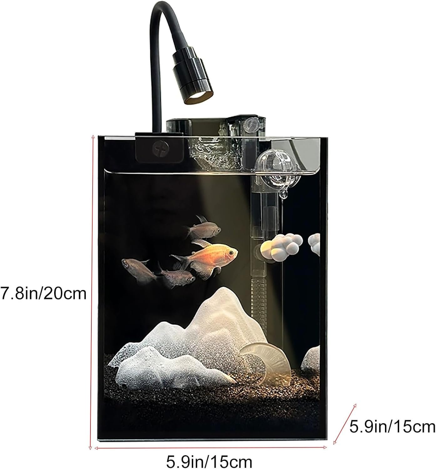 MODERNE WOHN- UND BÜRODEKOR – Das elegante Mini-Aquarium mit USB-betriebener LED und rutschfester Basis passt auf Schreibtische, Schlafsäle, Kinderzimmer oder Büros und verleiht jedem Raum Entspannung und Stil