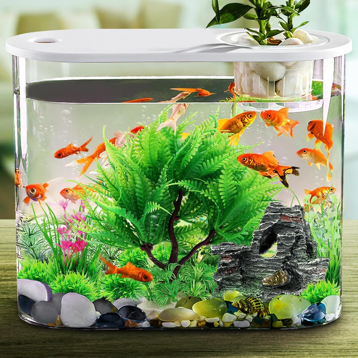Die baumförmige Kunststoffpflanze kann nicht nur Ihr Aquarium verschönern, sondern den Fischen auch einen bequemen Unterschlupf bieten.