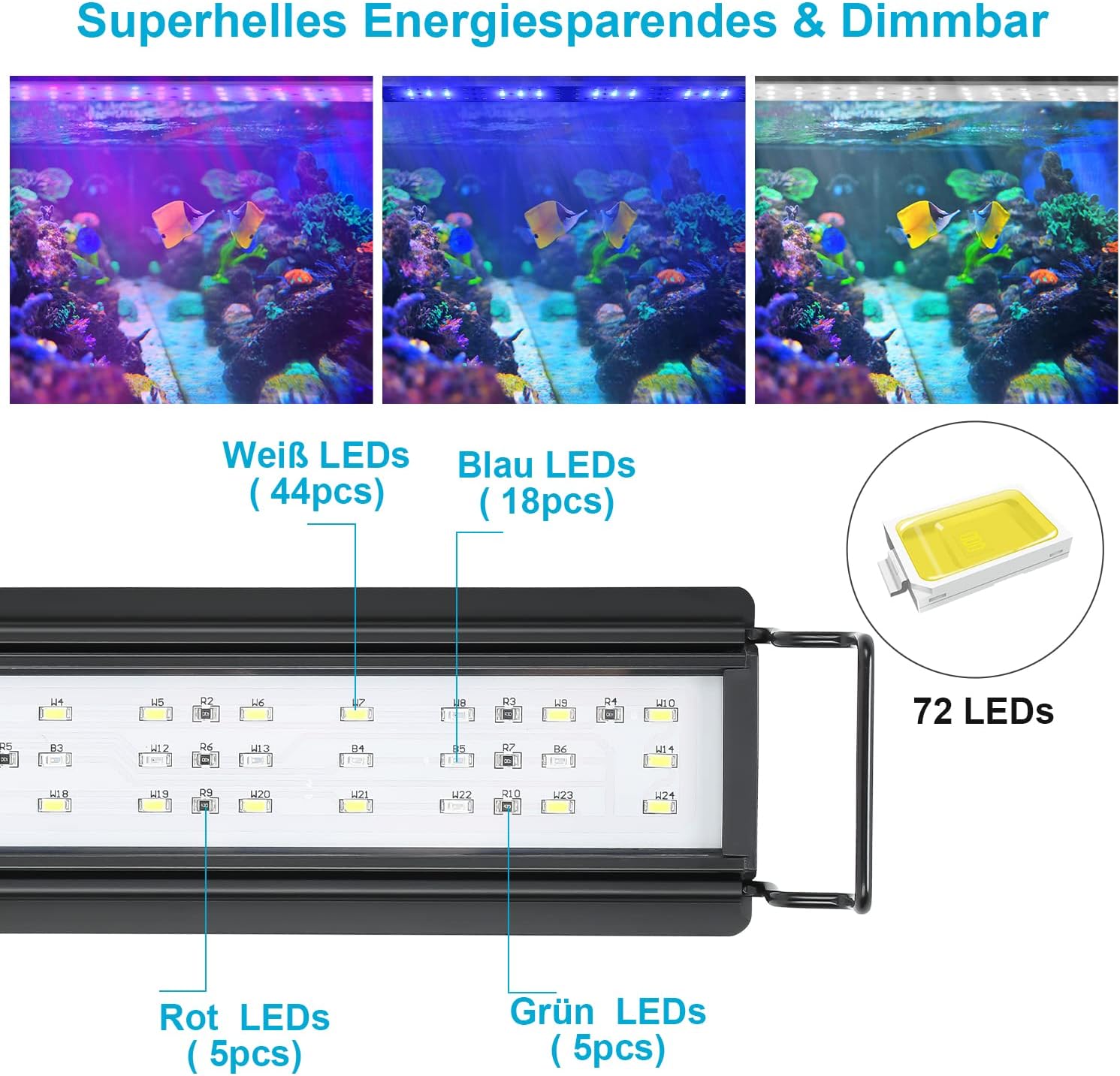 Aquarium-LED-Lampe: Material des Lampenkörpers: Aluminiumlegierung + Kunststoff, feuchtigkeitsbeständig und leitet die von der Lampe erzeugte Wärme schnell ab. Hochwertige SMD-LED-Technologie spart Energie und verlängert die Lebensdauer des Produkts.