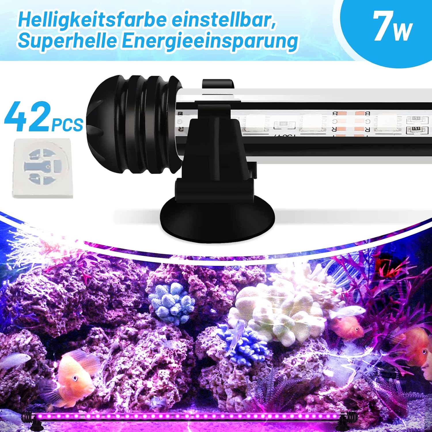 Hohe Helligkeit und lange Lebensdauer: 7 W RGB-Aquarienlicht mit hochwertiger Acrylröhre und superhellen 5050 SMD-LED-Lampenperlen, hitzebeständig und korrosionsbeständig, leicht zu reinigen und langlebig, ist eine neue Art von Energie. Dekorative Beleuchtung einsparen.