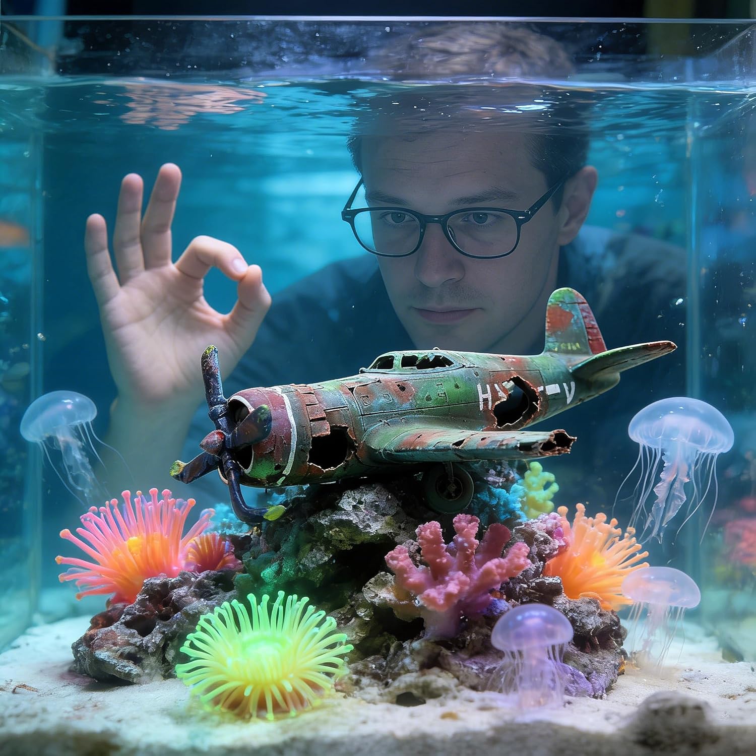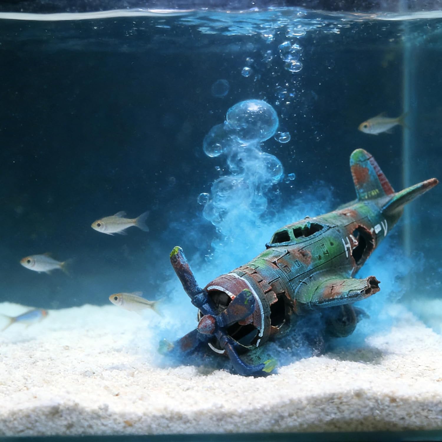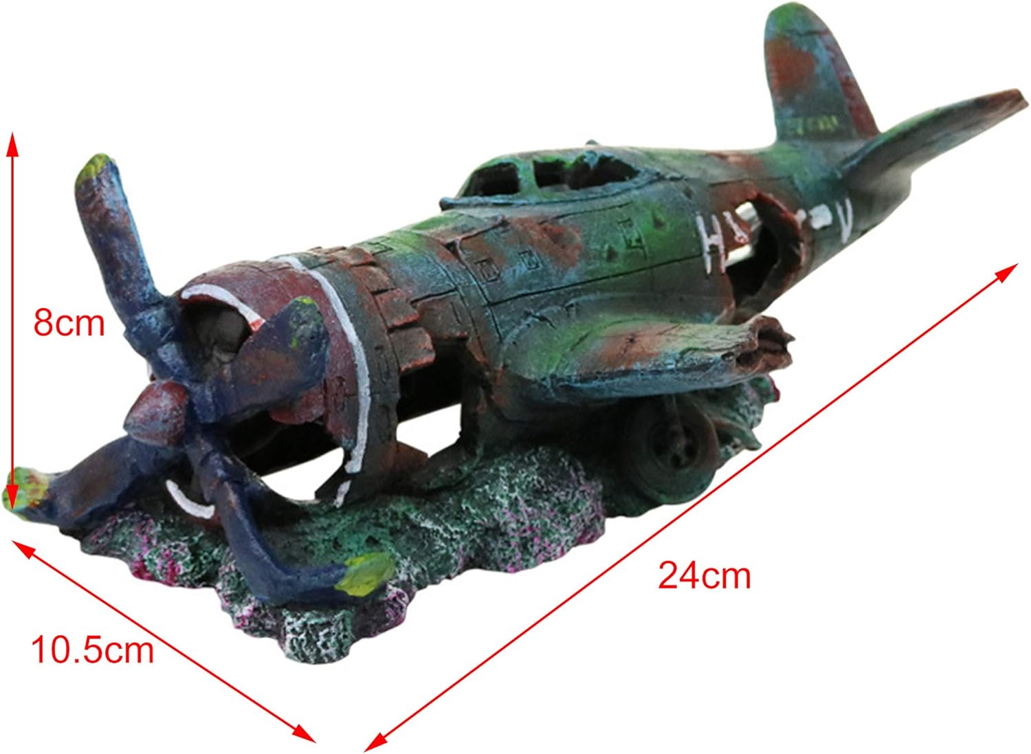 Perfekte Größe: Die Größe dieser Kampfflugzeug-Aquariendekoration beträgt 24 x 10,5 x 8 cm. Ideal für kleine Fische und Garnelen. Es nimmt nicht viel Platz in Ihren Aquarien ein.