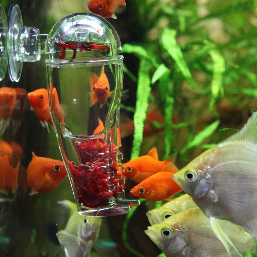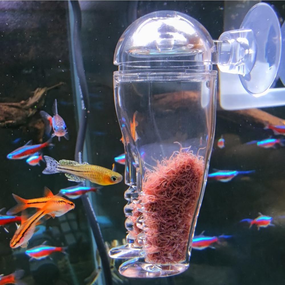 5. EINFACH ZU VERWENDEN Legen Sie einfach den Köder oder das Futter in das Angelgerät und warten Sie, bis die Beute hineinkommt. Der Futterspender deckt den Deckel ab, sinkt auf den Boden des Behälters oder wird an der Innenwand des Aquariumzylinders adsorbiert (die Verpackung enthält keinen Köder). Es wird empfohlen, den Auffangbehälter so zu platzieren, dass er sich unterhalb des Glases außerhalb des Wasserauslasses befindet.