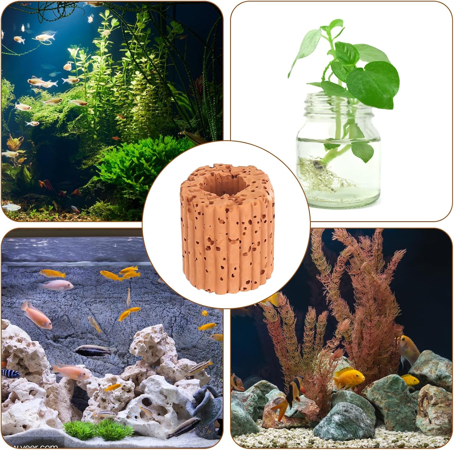 Multifunktionaler Einsatz: Besonders geeignet für die einfache Landschaftsgestaltung kleiner Aquarien. Diese Aquarium-Landschaftsringe eignen sich nicht nur zum Befestigen von Wasserpflanzen, sondern auch zum Befestigen anderer Dekorationsgegenstände, wie Steine, Korallen usw., um Ihr Aquarium abwechslungsreicher zu gestalten.