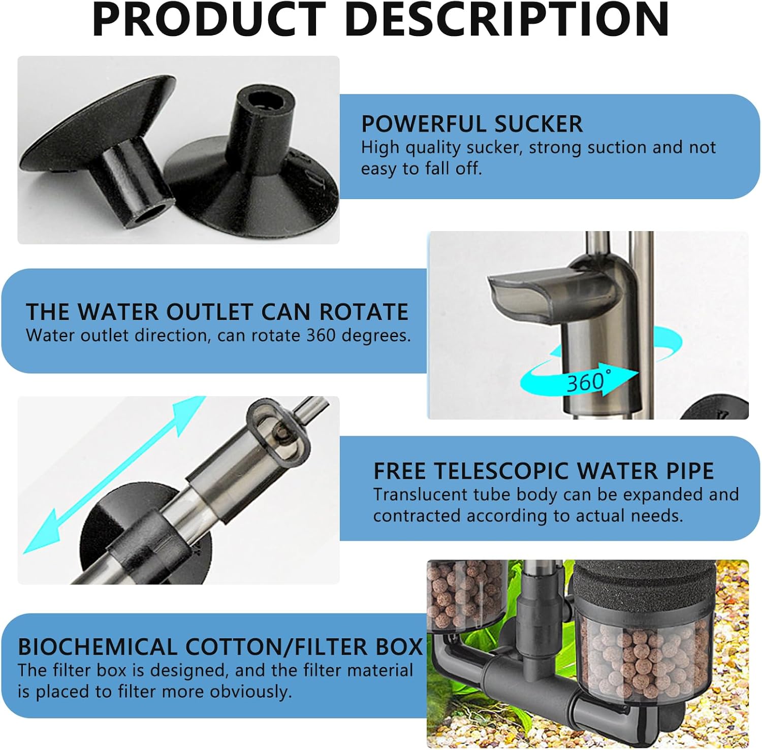 Praktisches Design: Der Aquarium-Schwammfilter bietet einen um 360° drehbaren Wasserablauf. Der Aquarium-Schwammfilter kann als leiser Schaumfilter an unterschiedliche Anforderungen angepasst werden