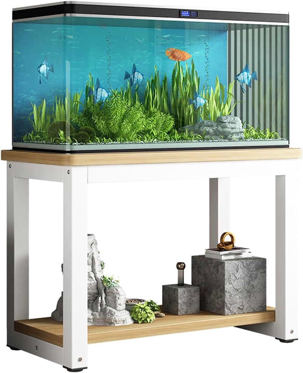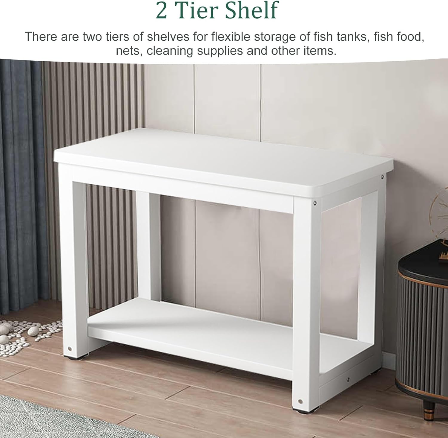【2-stufiger Aquariumständer】: Der Aquariumständer verfügt über zwei Regale. Die obere Ablage eignet sich für Aquarien und die untere für Fischfutter, Netze, Reinigungsmittel, Dekorationen und andere Gegenstände.