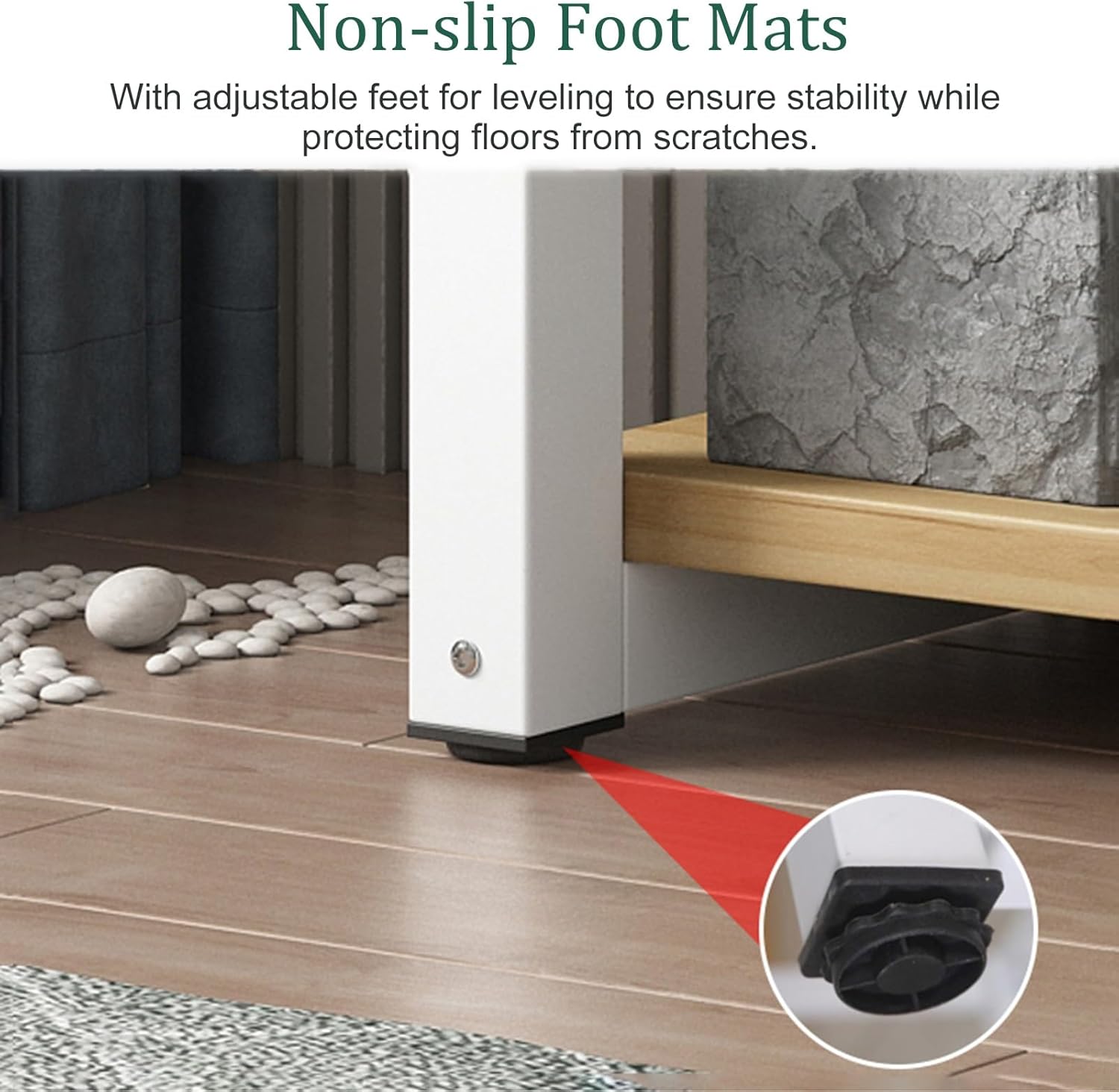 【Rutschfeste Fußmatten】Dieser Aquariumständer verfügt über verstellbare, nivellierbare und rutschfeste Fußpolster, die für Stabilität sorgen, ein Wackeln verhindern und gleichzeitig den Boden vor Kratzern schützen.