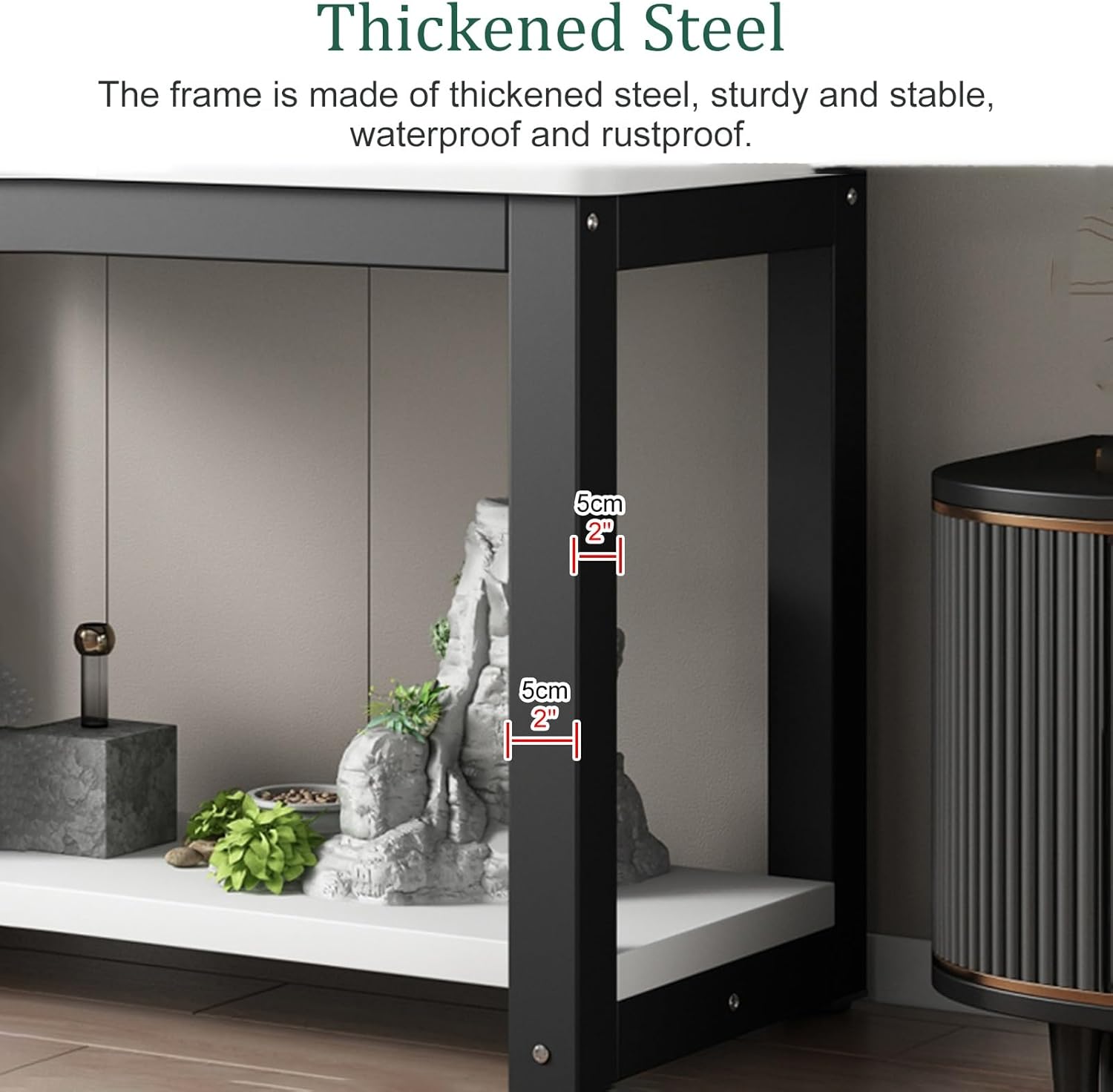 【Hohe Tragfähigkeit】 Dieser Aquarientisch besteht aus pulverbeschichtetem dickem Stahl und Holzplatten. Es ist robust, stabil, wasserdicht, rostfrei, leicht zu reinigen und bis zu 250 kg belastbar.