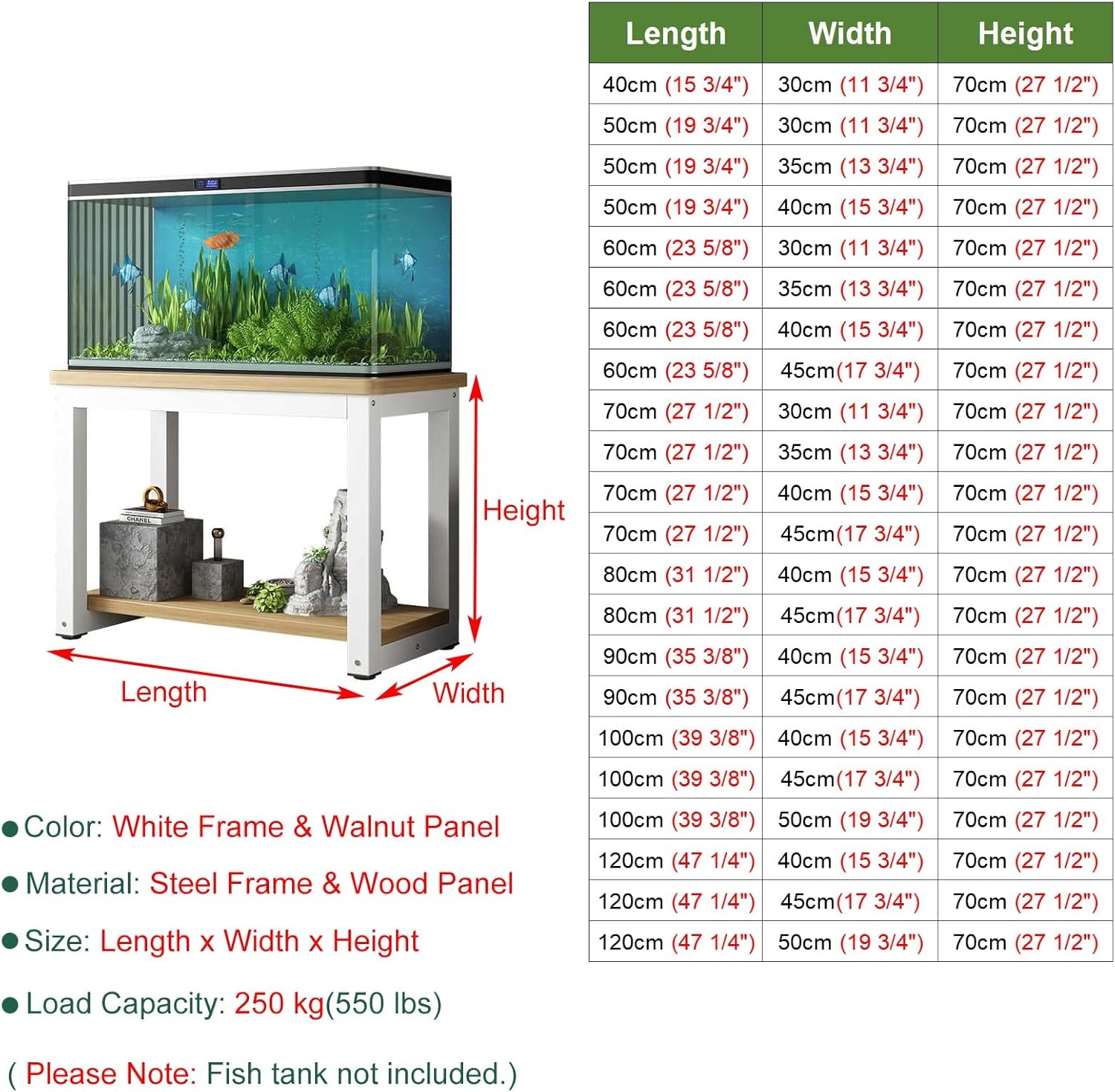 ☞ Bitte messen Sie vor dem Kauf die Größe Ihres Aquariums, um sicherzustellen, dass es auf den Tisch gestellt werden kann.