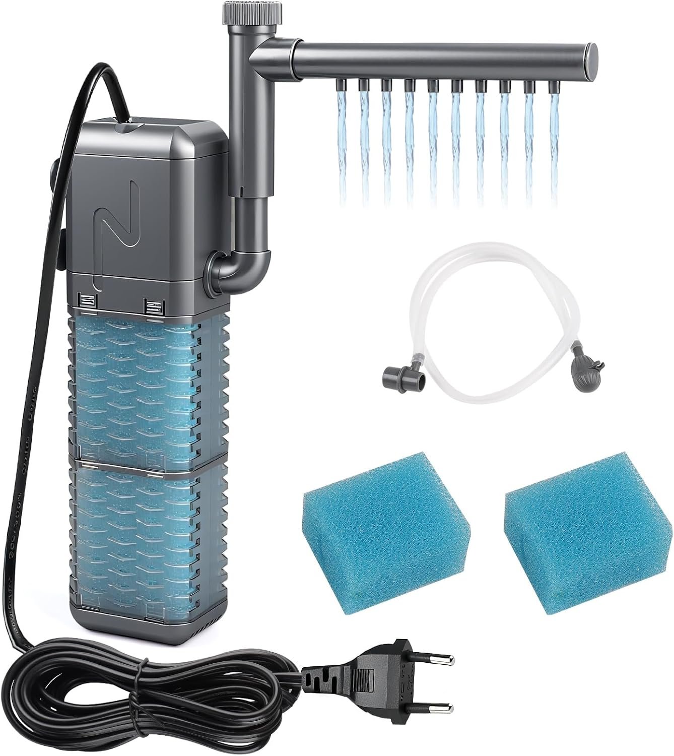 Der Aquarienfilter ist mit einem hochwertigen Motor ausgestattet, der leise und energiesparend läuft. Sie lässt sich leicht zerlegen und warten, was sie zu einer idealen Filterpumpe für Aquarien macht.