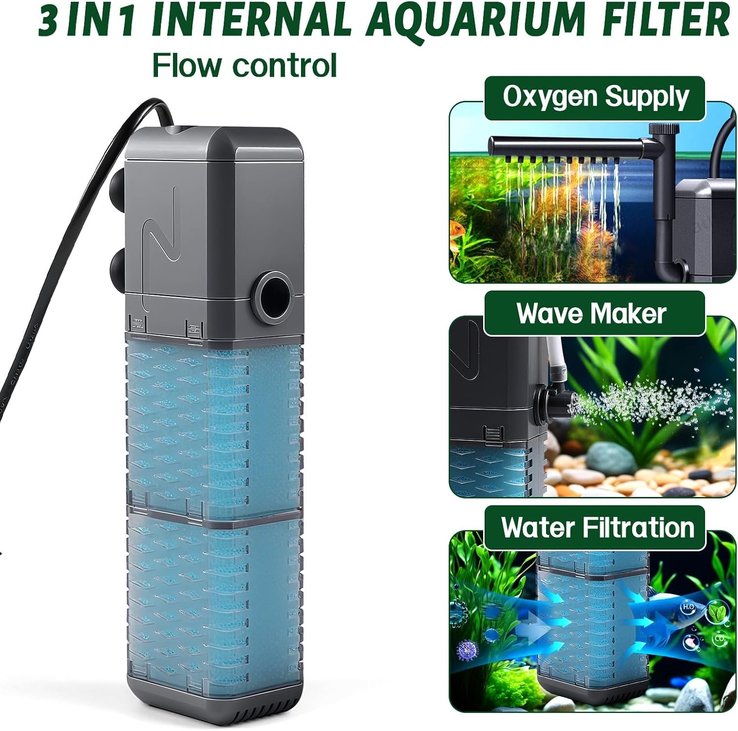 Vielseitiger Aquarium-Innenfilter: Der Aquarium-Innenfilter kombiniert sauerstoffreiche Filterung mit Wellenbildung und bietet Regen- und Sprühmodi. Es filtert effektiv Schwebstoffe im Aquarium und die Sauerstoffwelle sorgt für eine Wasserzirkulation, die einen gesunden Lebensraum für Fische schafft. Als Schwammfilteraquarium bietet es eine effiziente Wasserreinigung.