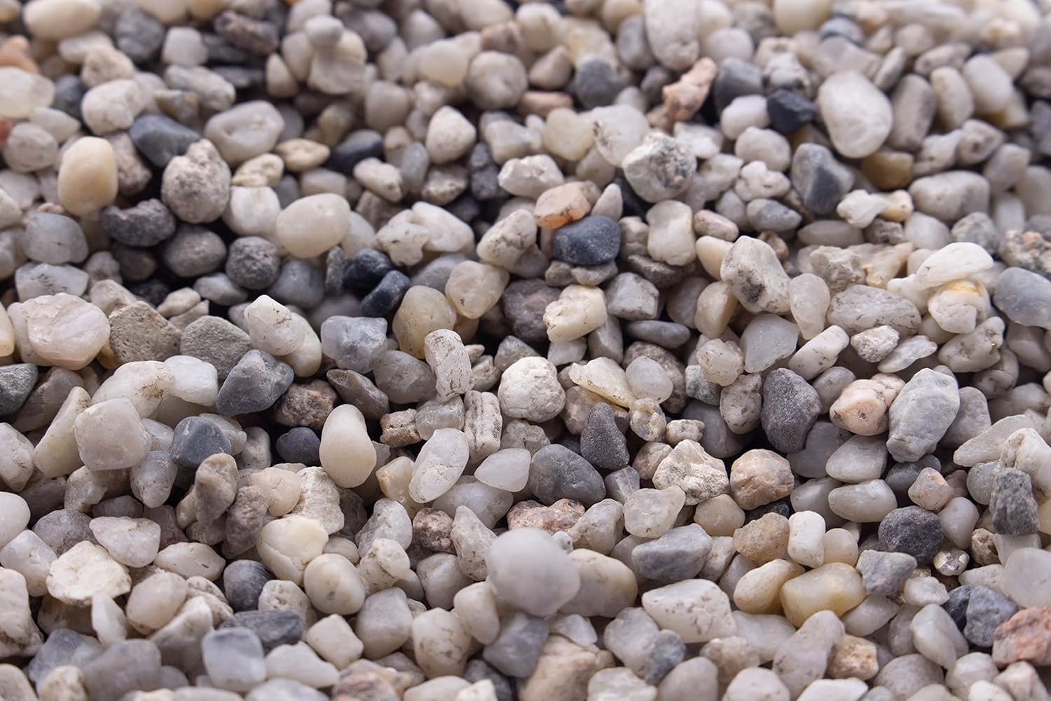 Die Kieskörner sind mehrfarbig und in 5 Körnungen erhältlich: 0,8–1,6 mm/1–3 mm/3–5 mm/5–10 mm/10–20 mm.
