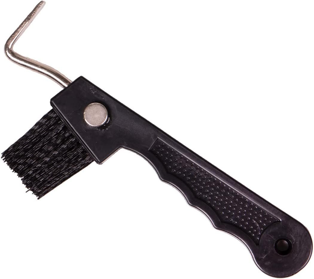 Dieser Hufkratzer ist immer da, wenn Sie ihn brauchen! – Es besteht aus stabilem Kunststoff und ist mit einer Bürste mit festen Borsten ausgestattet.