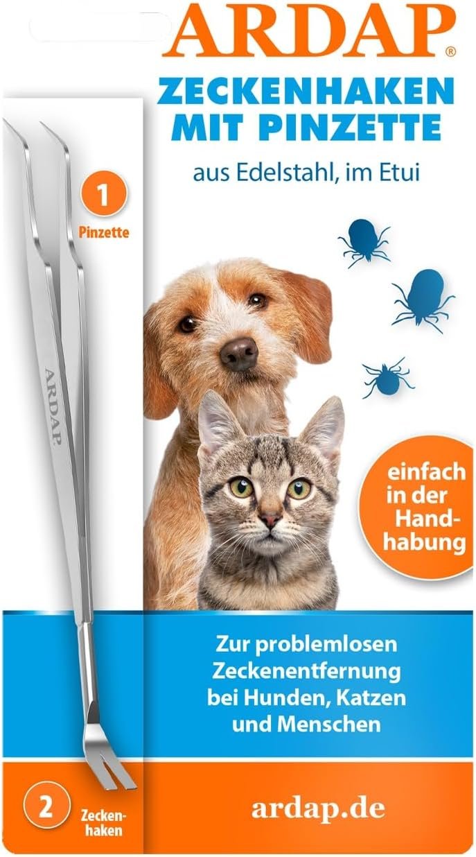 Der ARDAP Zeckenhaken mit Pinzette eignet sich perfekt zum schnellen und gründlichen Entfernen von Zecken und ist durch seine Doppelfunktion besonders praktisch: