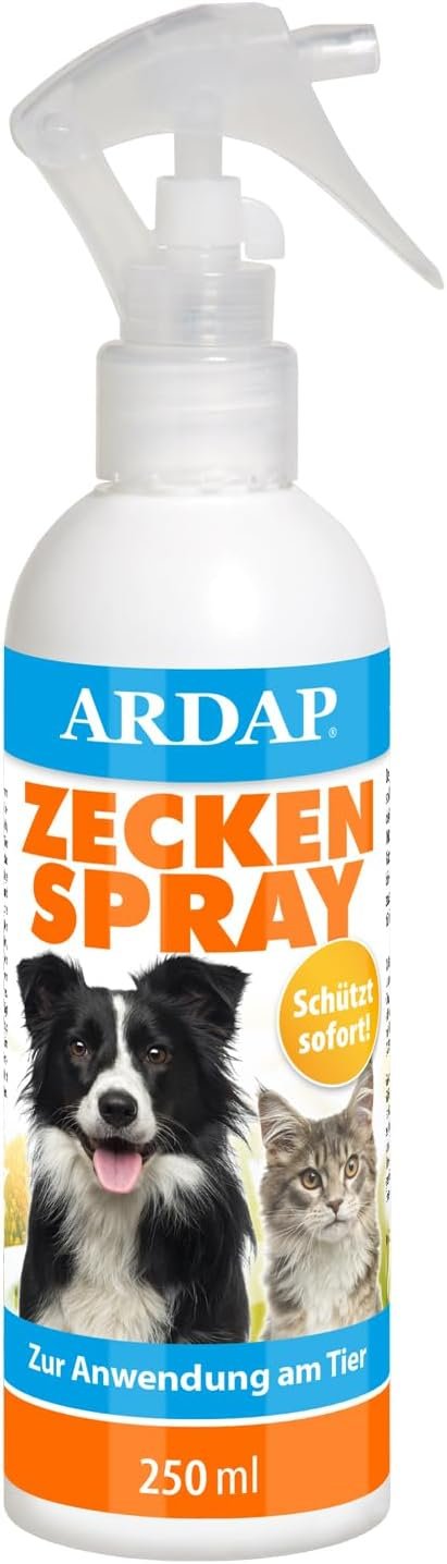 Das Spray sollte gründlich auf das Tier aufgesprüht werden, bis das Fell leicht angefeuchtet ist – achten Sie dabei besonders auf Hals und Schwanzwurzel, da dort Zecken häufiger vorkommen
