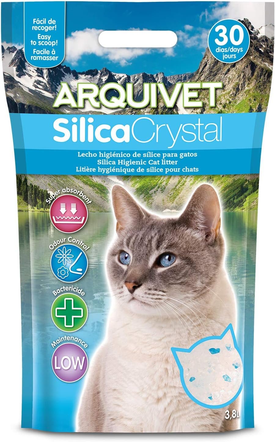 Hygienische Katzentoilette auf Basis von Kieselsand Es hat eine hohe Saugfähigkeit, absorbiert schlechte Gerüche und hilft, Bakterien zu beseitigen.