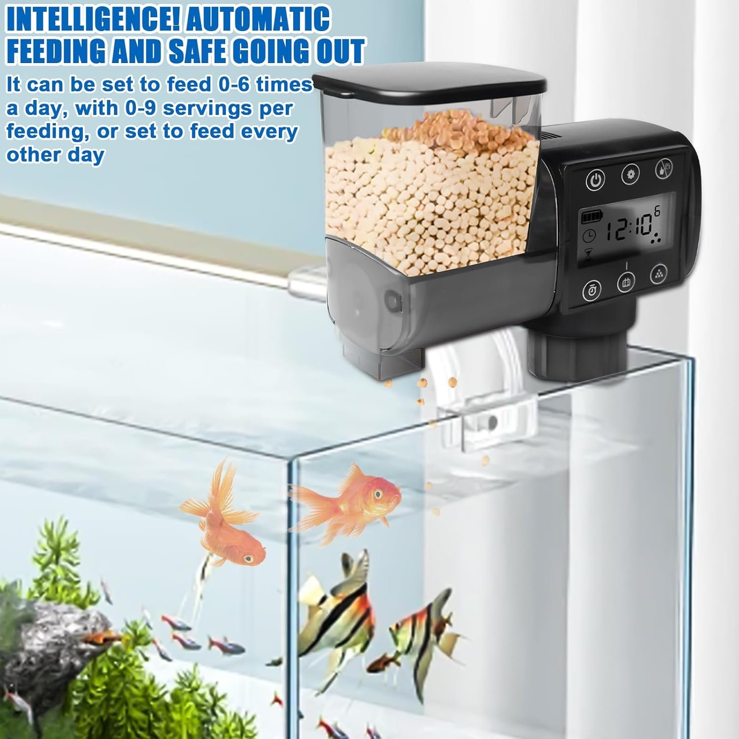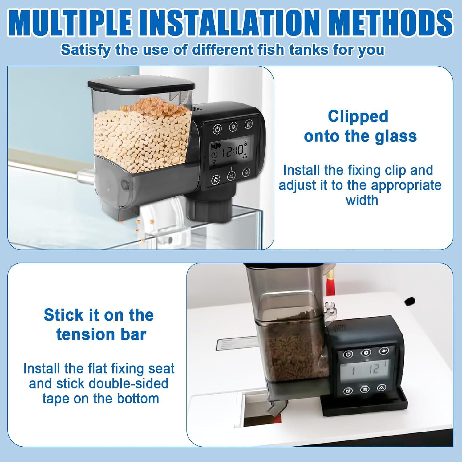HOHE QUALITÄT: Der Aquarium-Futterspender liefert das Futter punktgenau und ohne Futterstaus. Es können verschiedene Futterspezifikationen eingegeben werden, z. B. Granulat, Pulver und Bandformen. Lassen Sie Ihre Fische jeden Tag pünktlich fressen
