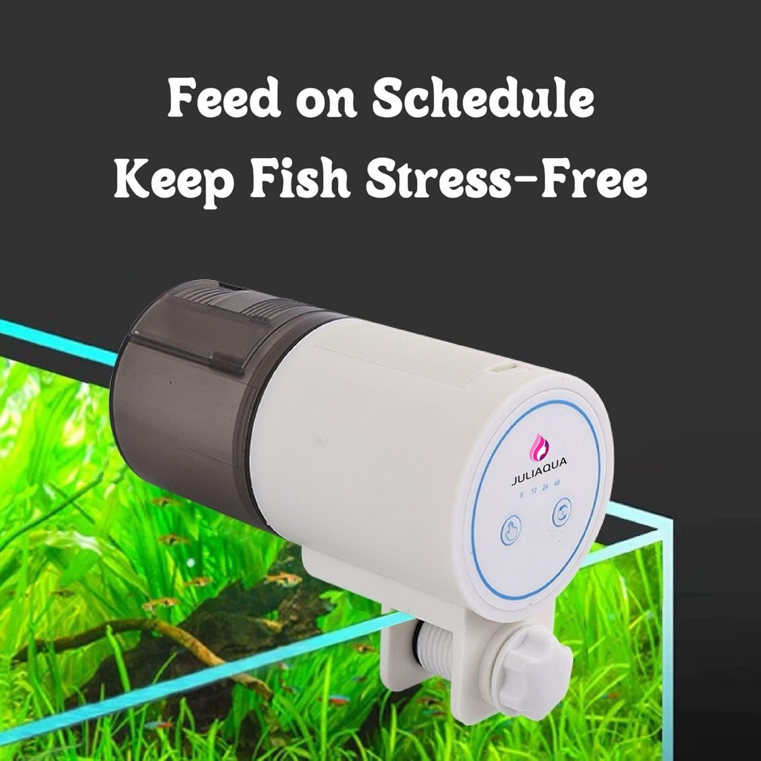 Zwei Installationsmethoden: 1. Sie können es mit einer verstellbaren Clipbasis an einer 1–25 mm dicken Aquarienabdeckung befestigen. 2. Oder befestigen Sie den Futterspender mit einer flachen Basis