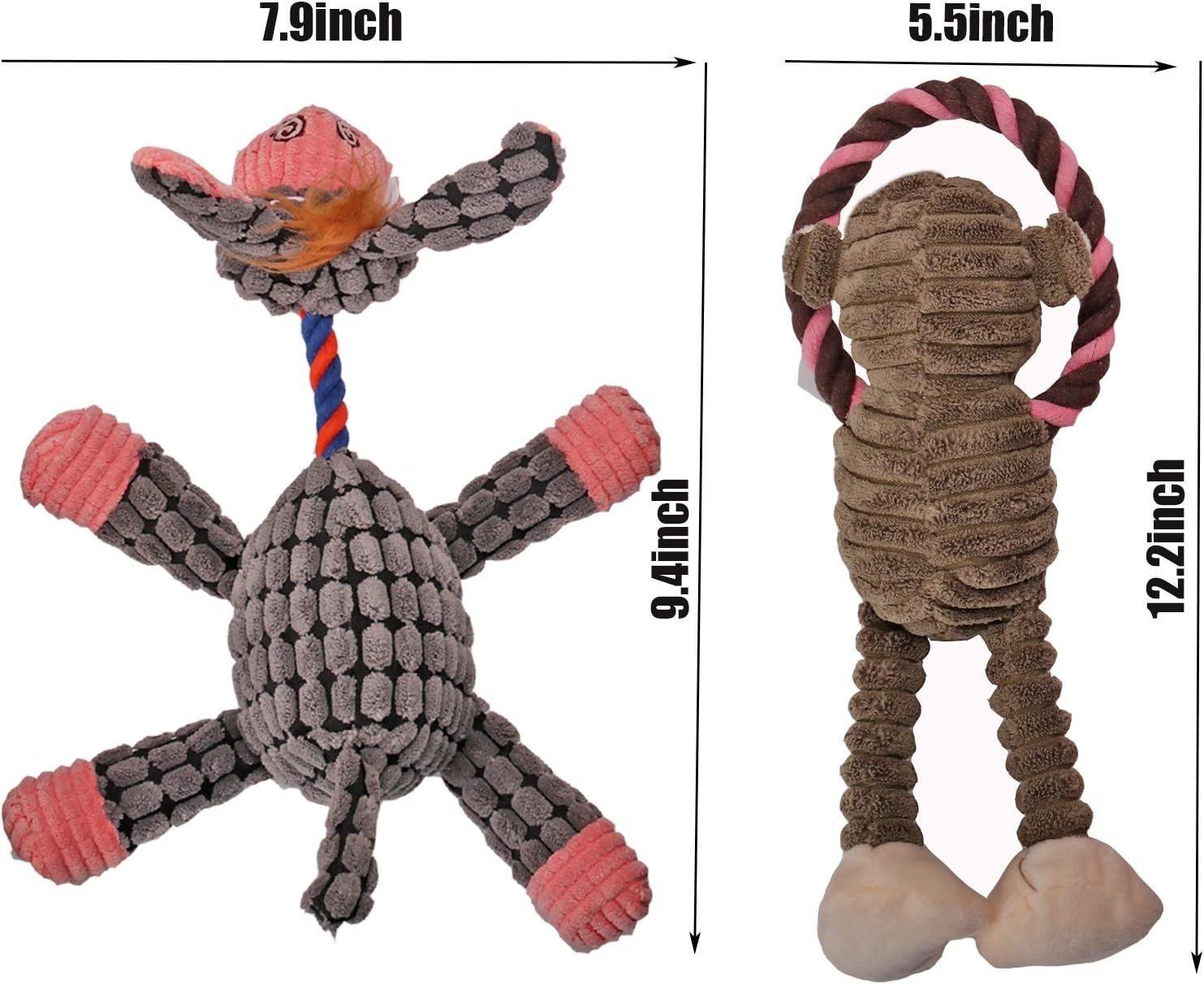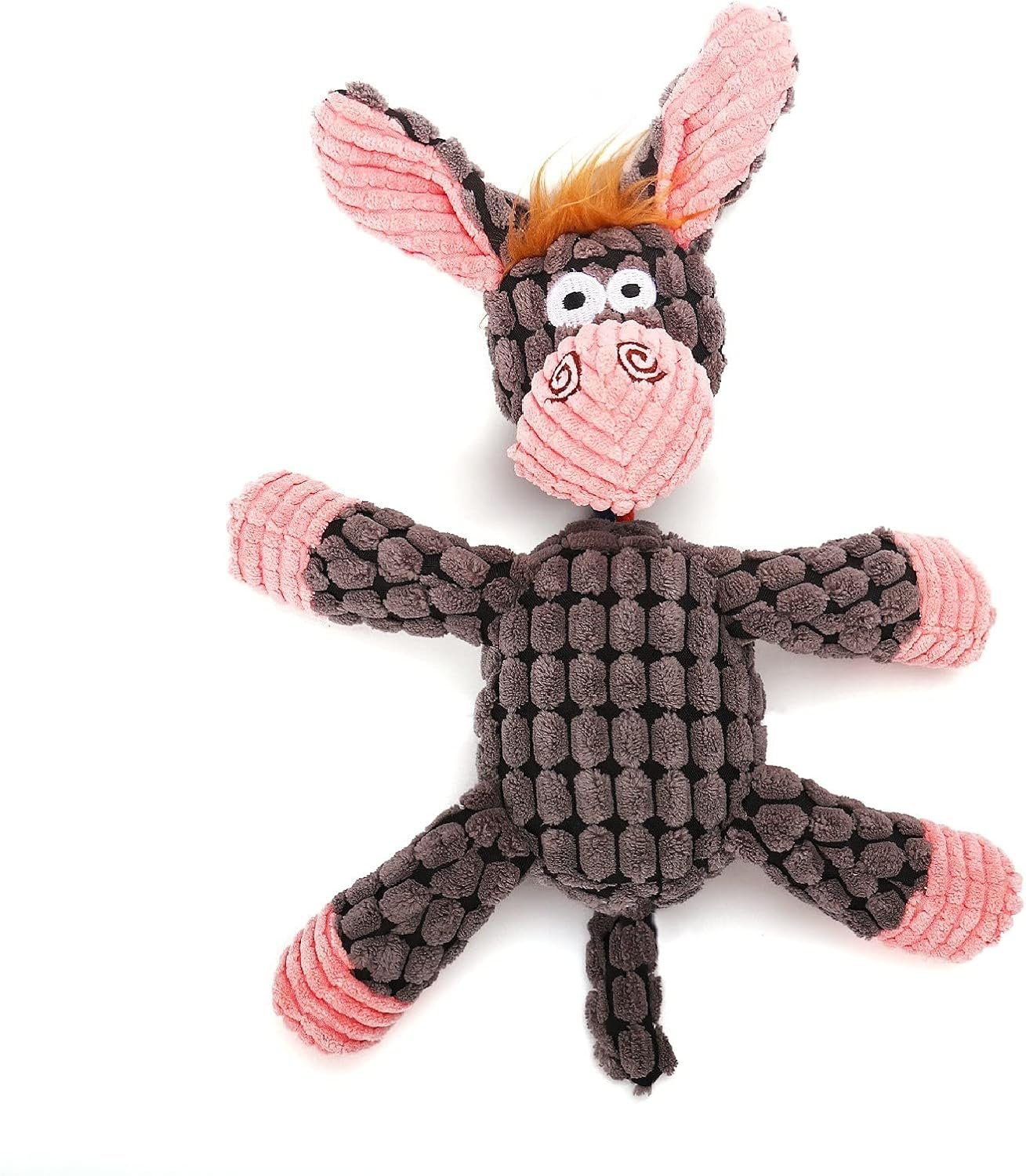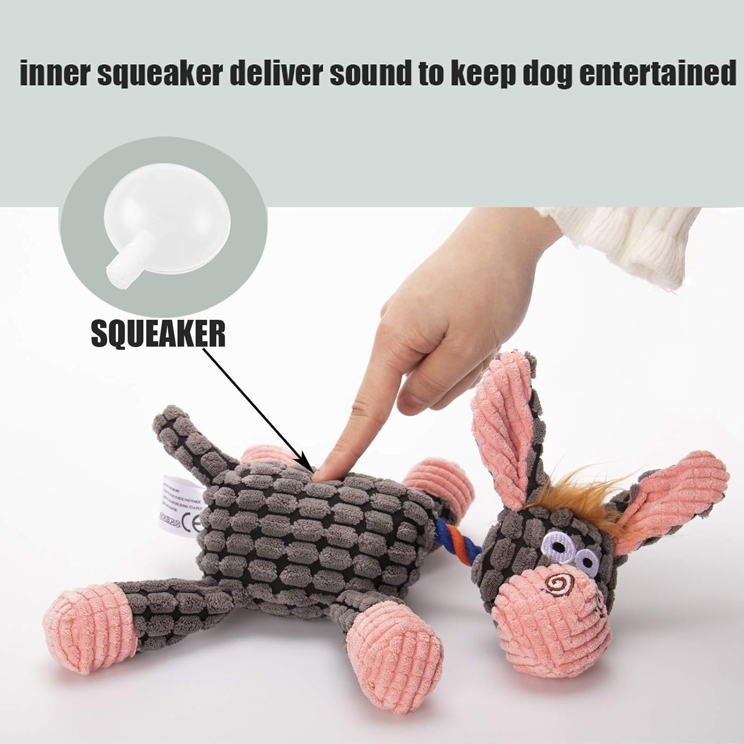 Durchdachtes Design: Jedes quietschende Plüschtier verfügt über einen integrierten Quietscher, um die Aufmerksamkeit Ihres Hundes zu fesseln und stundenlange interaktive Zeit zu verbringen. Da es keine Plastikaugen oder -nasen gibt, müssen Sie sich keine Sorgen machen, dass Ihr Hund beim Spielen Plastik verschluckt oder erstickt.