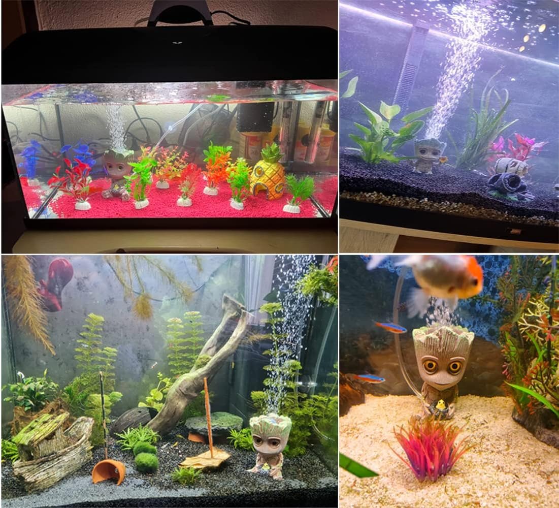Baby-Groot-Aquarium-Dekoration: Diese niedliche Groot-Dekoration verfügt über realistische Schnitzdetails und handbemalte Kunstwerke, kann Blasen erzeugen, um den Sauerstoffgehalt zu erhöhen, und kann auch die einzigartige Aquarienlandschaft dekorieren.