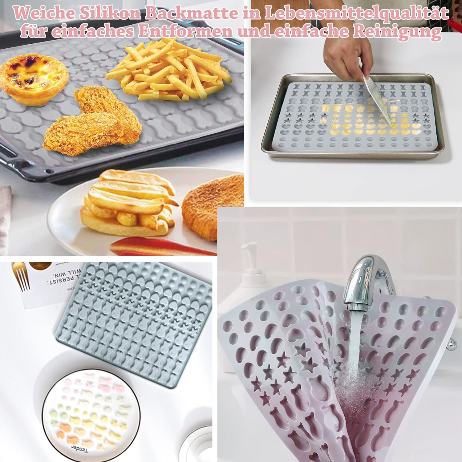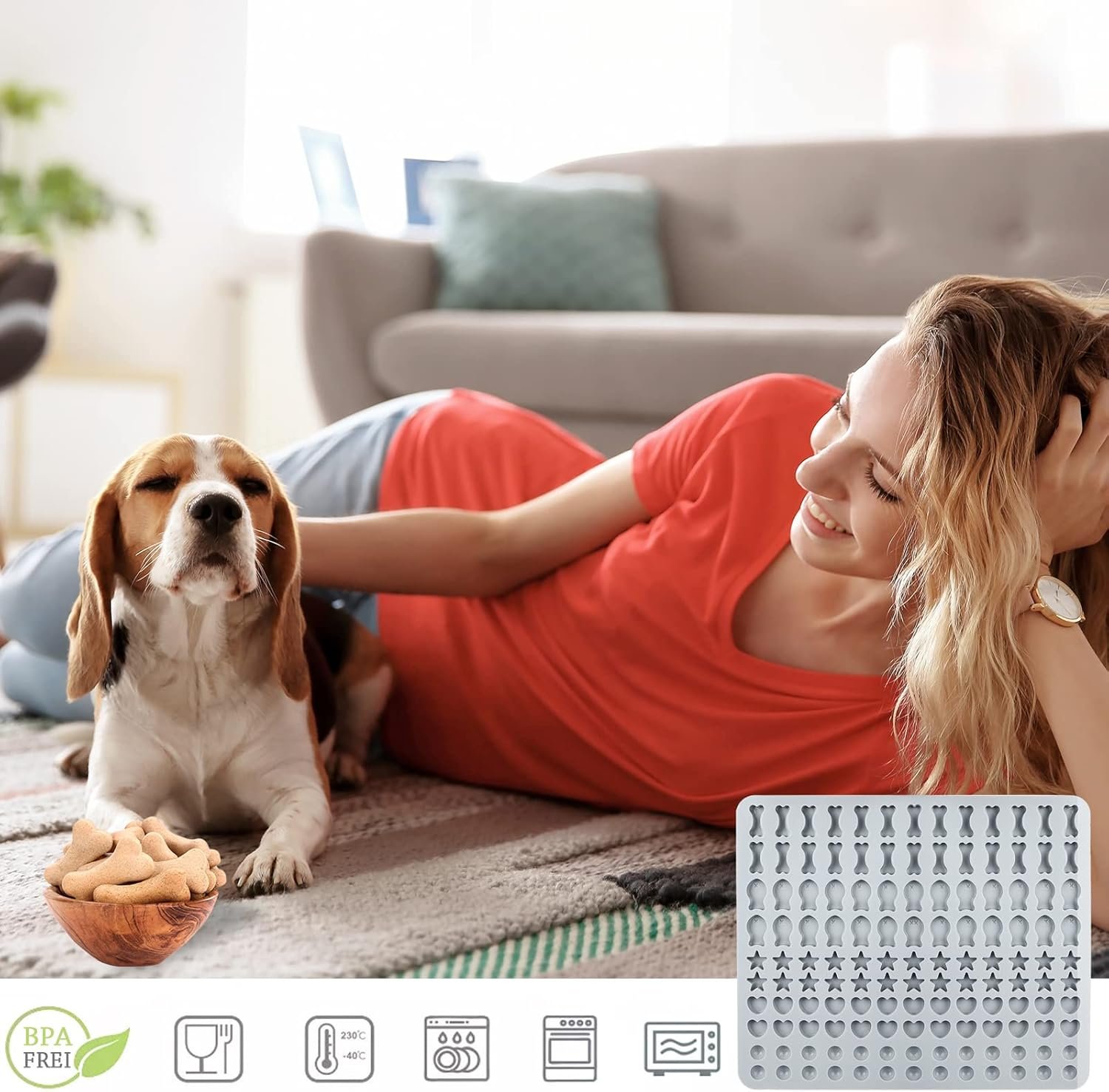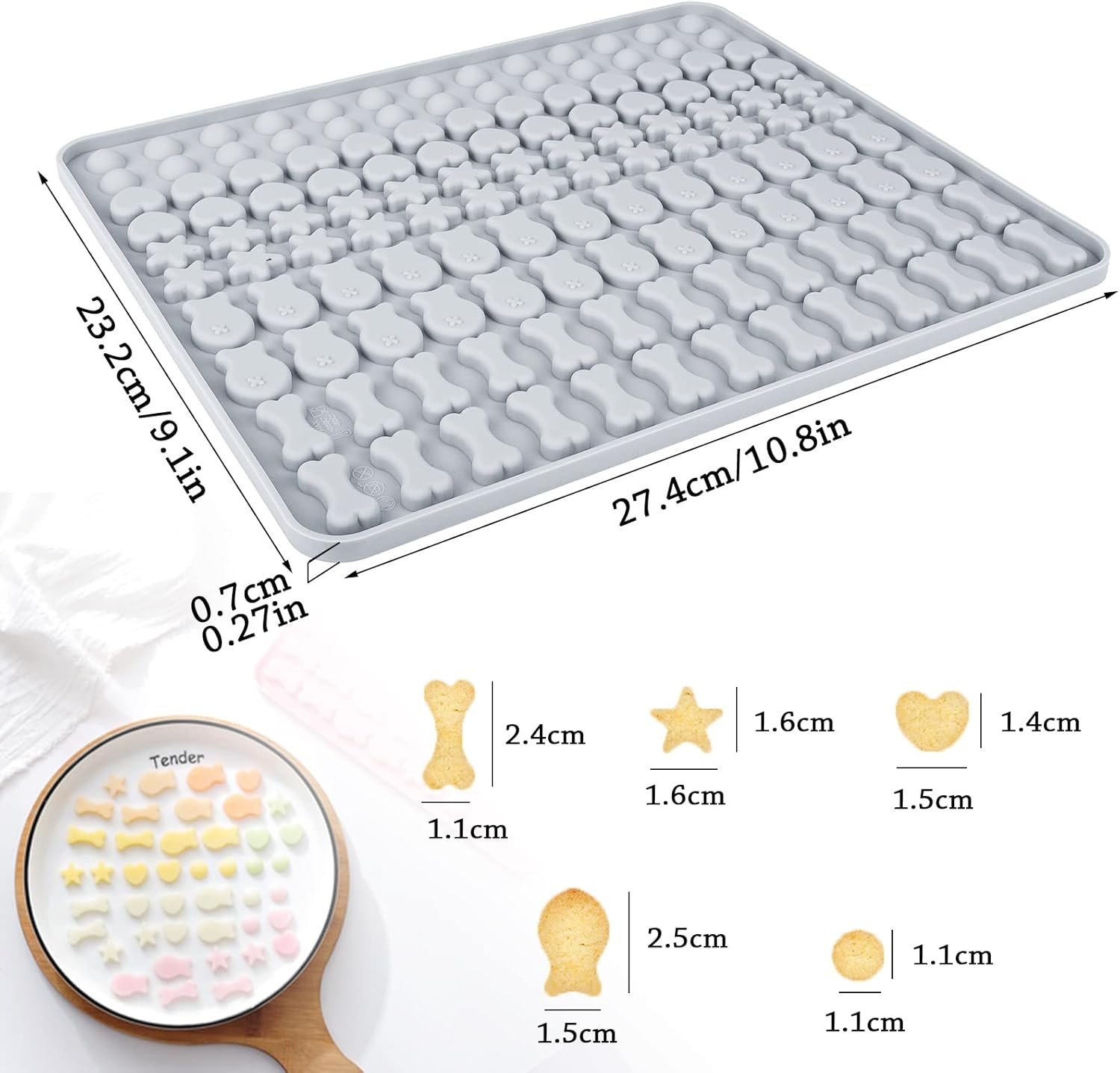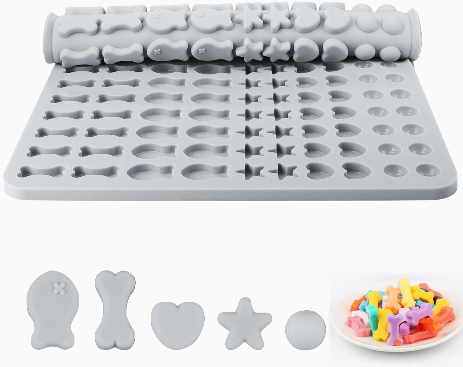 Backmatte mit gemischten Formen: Diese Silikon-Backmatte mit 130 Gittern und 5 Formen für Hundekekse mit Muster kann Ihren verschiedenen Bedürfnissen gerecht werden und ist die beste Backmatte mit gemischten Formen, um Ihnen dabei zu helfen, gesunde, nahrhafte Leckereien für Ihren Hund zuzubereiten