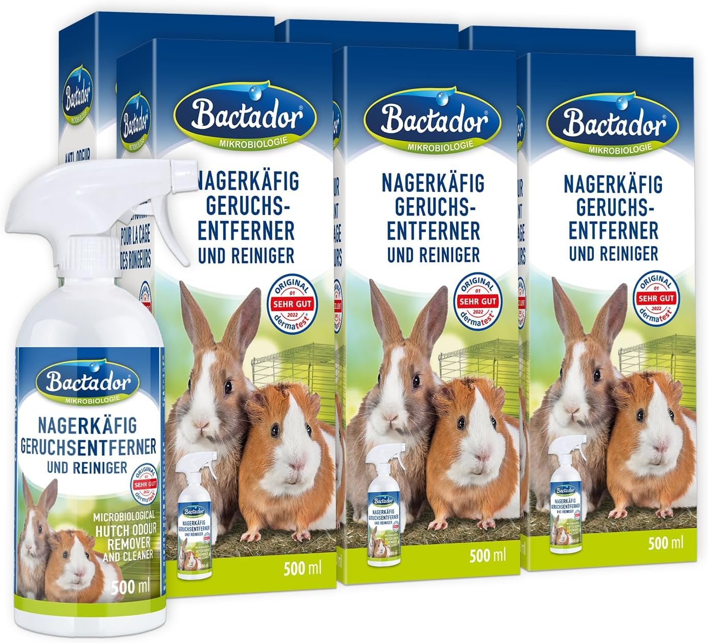 Intensive Reinigung. Um Gerüche und Flecken richtig und nachhaltig zu entfernen, ist es notwendig, die Geruchsquelle nicht nur abzudecken, sondern effektiv zu beseitigen. Der Bactador Nagerkäfig-Geruchsentferner ist ideal für den zuverlässigen Einsatz im Nagerkäfig und der Umgebung, z. B. bei Kot-/Urinflecken, Haustiergerüchen und vielem mehr. Bactador-Mikrobiologie: Die originale, hochwirksame Bactador-Technologie mit probiotischen Mikroorganismen beseitigt die Geruchsursache und neutralisiert Gerüche und Flecken tiefgreifend und dauerhaft. Bactador Microbiology bietet eine material- und hautschonende Alternative zu aggressiven, chemischen Reinigungsmitteln und ist für die Umwelt von Mensch und Tier geeignet. Endlich dauerhaft geruchlos