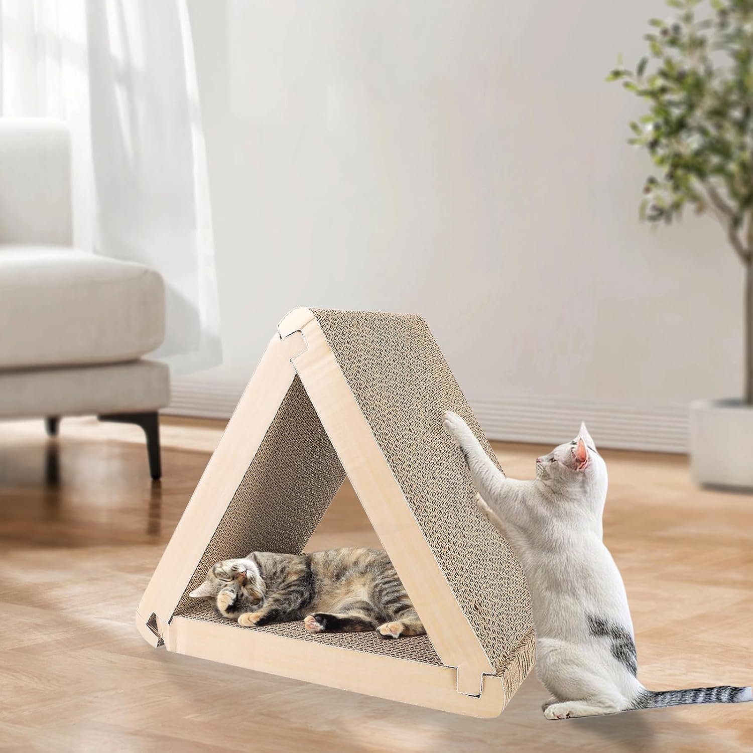 DOPPELSEITIG VERWENDBAR: Das dreieckige Katzenkratzbrett für Katzen ist doppelseitig und verfügt über zwei nutzbare Seiten, was die Lebensdauer des Kratzbretts verdoppelt und es kostengünstiger macht. Drehen Sie Kratzbretter aus Wellpappe für Katzen um, um ein neues Kratzbrett zu erhalten