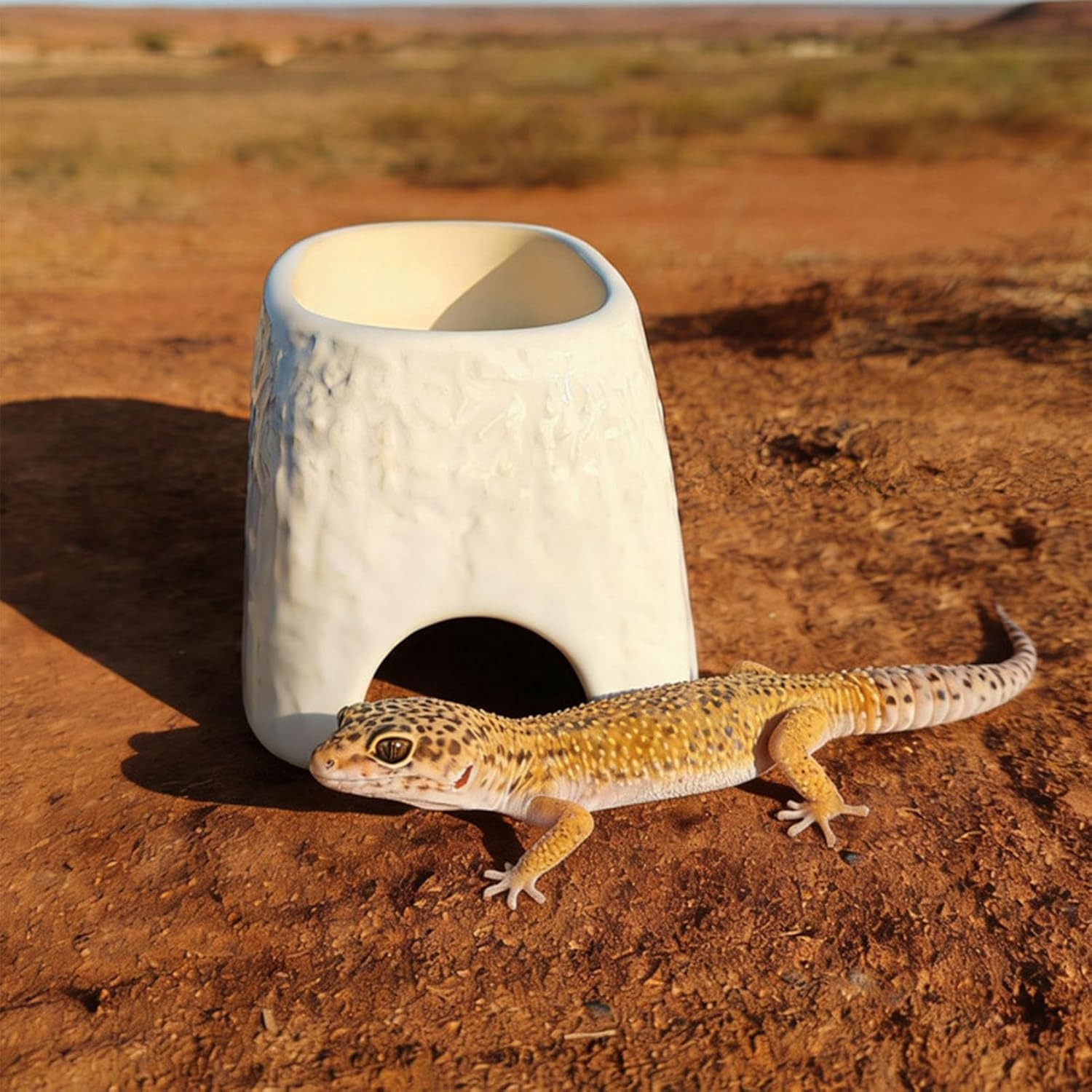 Die Leopardengecko-Höhle ist eine vielseitige 2-in-1-Keramikunterkunft, die Reptilien einen sicheren und komfortablen Lebensraum bietet. Diese robuste Höhle verfügt über eine integrierte Futterwanne, die sowohl funktional als auch platzsparend für Ihr Terrarium ist. Ideal für Leopardengeckos, Bartagamen, Schlangen, Eidechsen und Spinnen, schafft sie eine natürliche Umgebung, die ihr Wohlbefinden fördert. Das Keramikmaterial sorgt für optimale Stabilität und Langlebigkeit, während es Temperaturbedingungen im Lebensraum einhält. Verbessern Sie den Lebensraum Ihres Haustieres, indem Sie ihm diesen zuverlässigen Unterschlupf und Futterplatz anbieten, der perfekt für jeden Reptilienliebhaber geeignet ist, der Praktikabilität und Komfort in seinem Terrarienzubehör sucht.