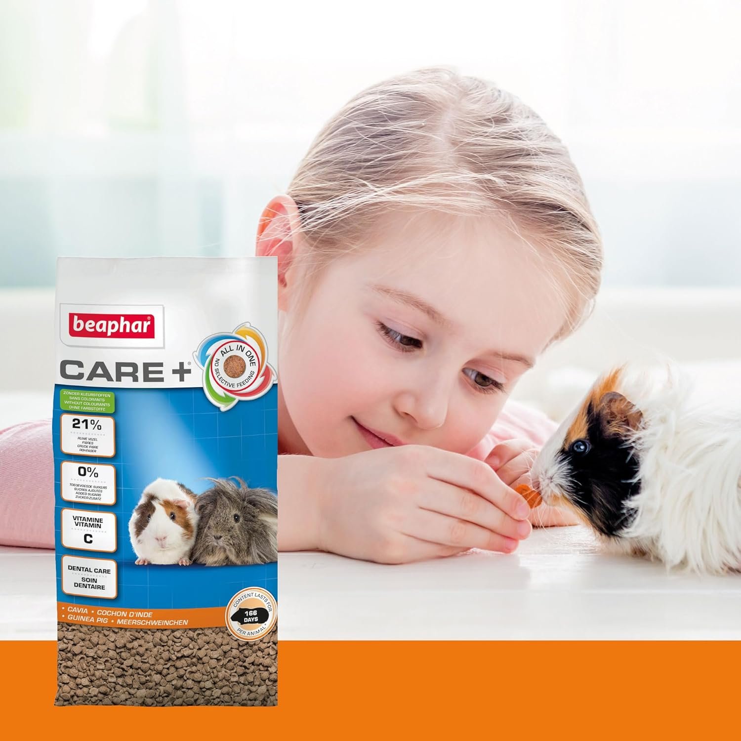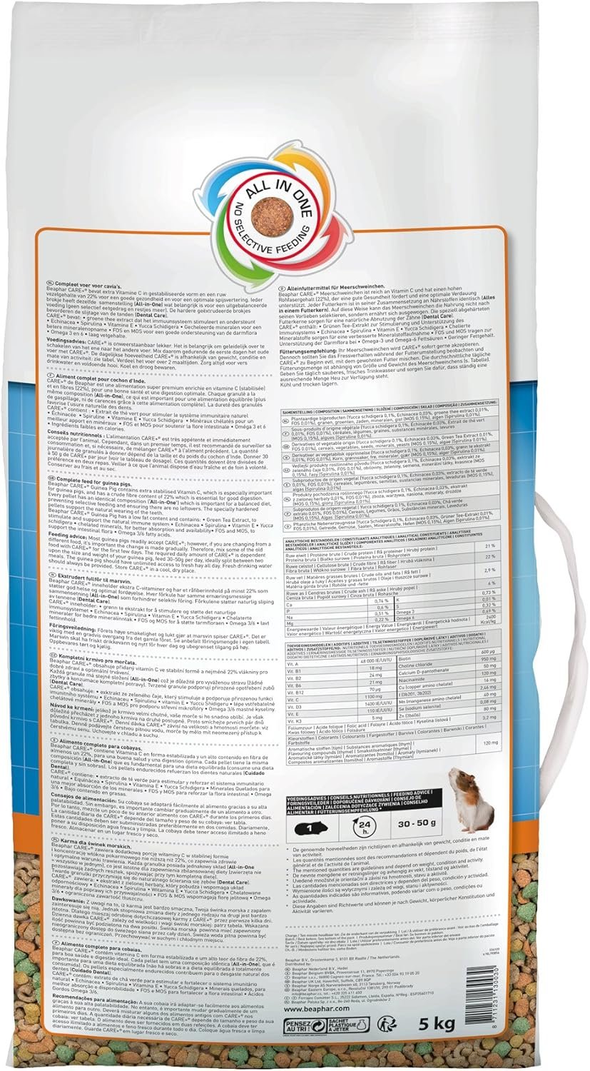 Gebrauchsanweisung: Füttern Sie Ihr Meerschweinchen täglich mit 30–50 g Care+. Sorgen Sie immer für sauberes, frisches Trinkwasser und reichlich Heu.
