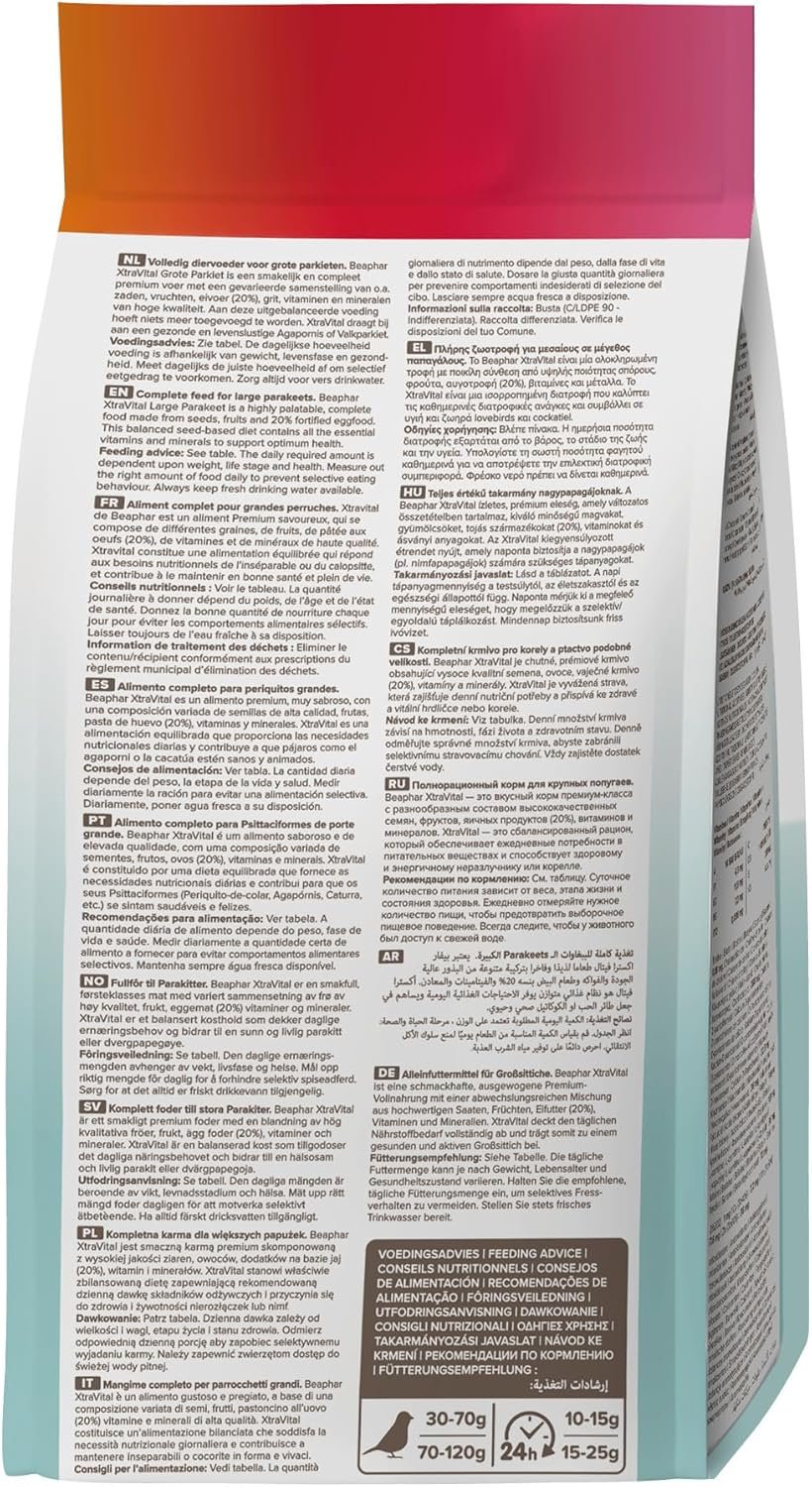 BEAPHAR – XtraVital Großsittiche – All-in-One-Premiumfutter für Großsittiche – 1 kg.