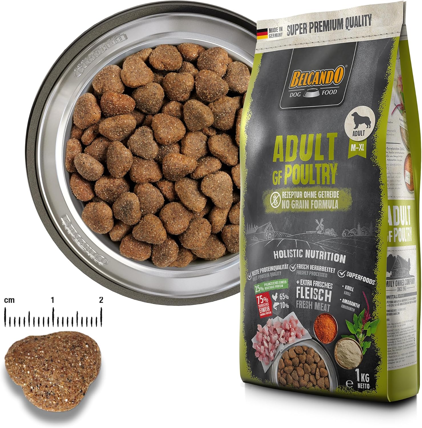 Die Alternative in der Ernährung von Hunden sind Futtermittelunverträglichkeiten gegenüber Gluten oder Getreide. In dieser Formel wird Getreide durch hochwertiges Amaranth ersetzt. Kombiniert mit Krill, einem wertvollen Vitalstofflieferanten wie Omega-3-Fettsäuren, ergibt sich eine besonders ausgewogene Rezeptur. Mit seinem begrenzten Protein- und Fettgehalt ist Belcando Adult GF Poultry auf die Bedürfnisse von Hunden mit normaler Aktivität abgestimmt.
