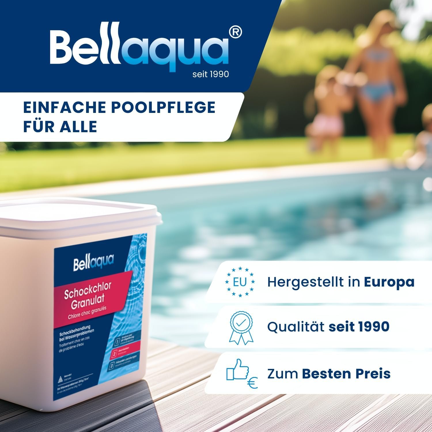 Bellaqua ist seit 1990 auf die Wasseraufbereitung von Pools spezialisiert und bietet seit über 30 Jahren hochwertige und einfach anzuwendende Produkte zur Poolpflege zu einem optimalen Preis-Leistungs-Verhältnis.