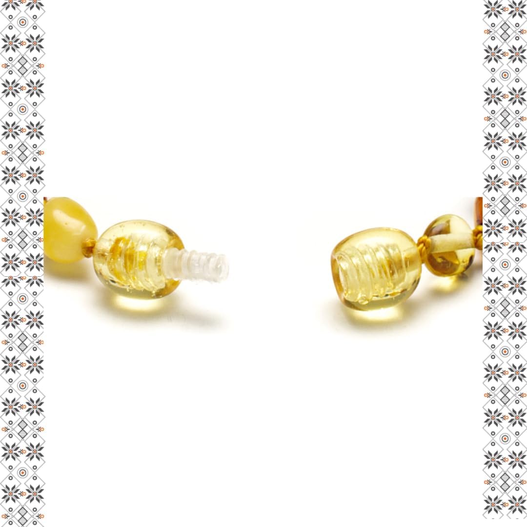 Der verwendete Bernstein ist ein Naturprodukt. Farbe, Form und Struktur jedes Steins variieren – jede Bernsteinkette ist ein einzigartiges Einzelstück mit natürlicher Optik.